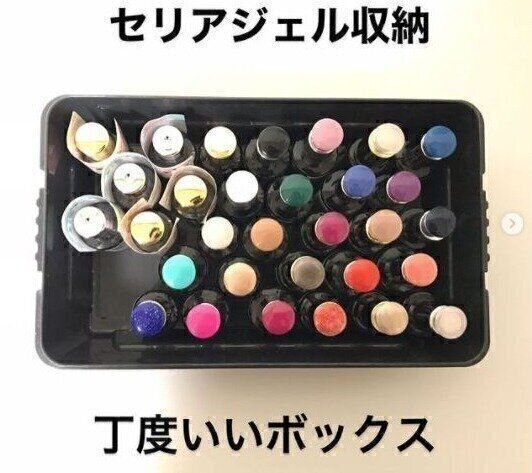 数のあるジェルネイルもセリアのボックスに収納すれば、見やすくわかりやすいですね。ふたつきボックスなので埃がつくのも防げ、重ねて収納することも可能です。