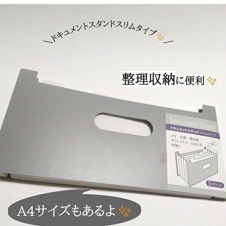 書類やプリントなどの整理にちょうどよいセリアのドキュメントスタンド。カラーは白、黒、グレーの3色があり、どれもデザインもシンプル。このスタンドを使えば、デスクまわりもすっきりキレイになりそうですね。