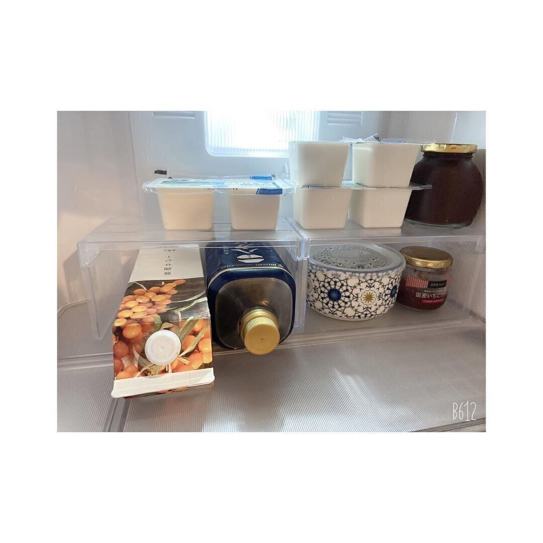 そのため、縦の空間を上下に分けられるため、無駄なく使えるでしょう。さらに、クリアな素材のため、棚が悪目立ちすることなくすっと馴染むのがうれしいですね。大人気なのにも納得の優秀アイテムです。