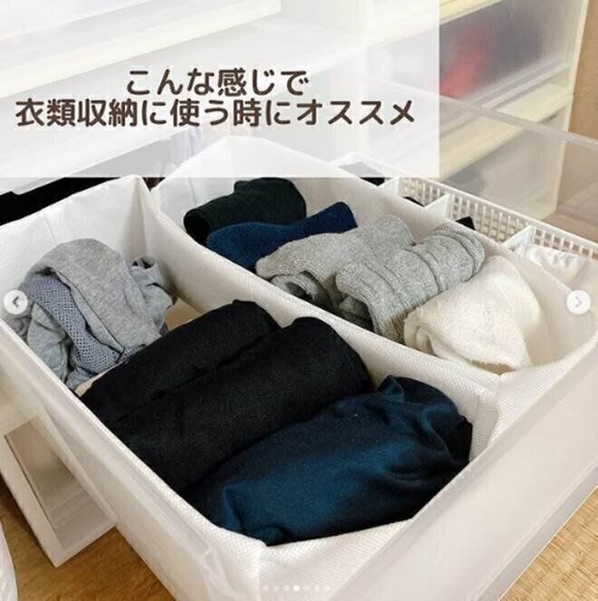折り返して好きな高さに調節できる「整理収納仕切りケース」。生地がしっかりしているので、収納ケースの中に入れてもヨレっとすることがありません。靴下やハンカチ、下着などを仕分けするのにもぴったり。整理収納のプロも使う優秀アイテムです。