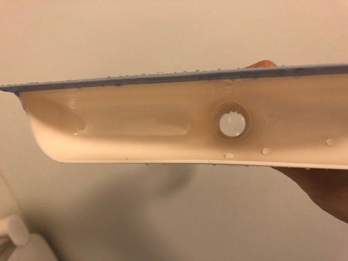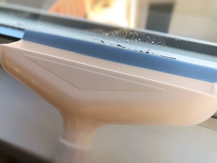 ワイパーを壁面と平行になるように持って、下から上へ水滴を拭き取ります。