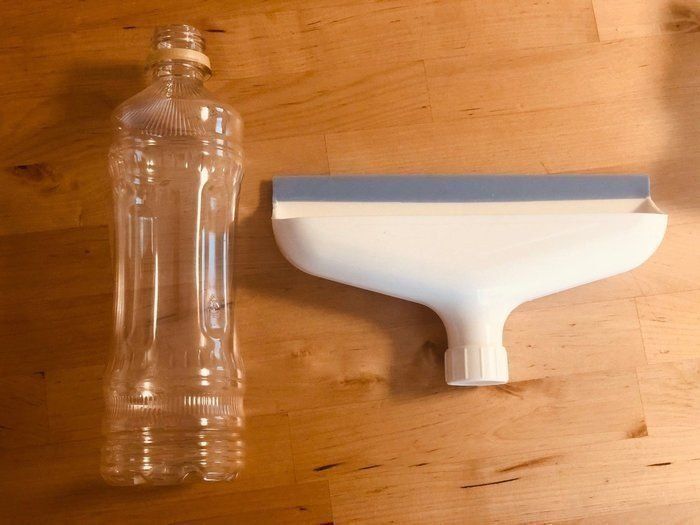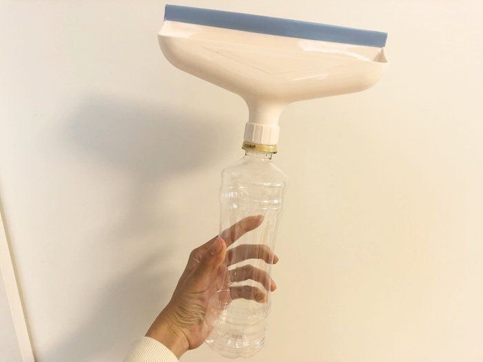 ペットボトルが持ち手にもなるので高いところにも届きやすく、すくった水滴はペットボトルにキャッチして溜められます。