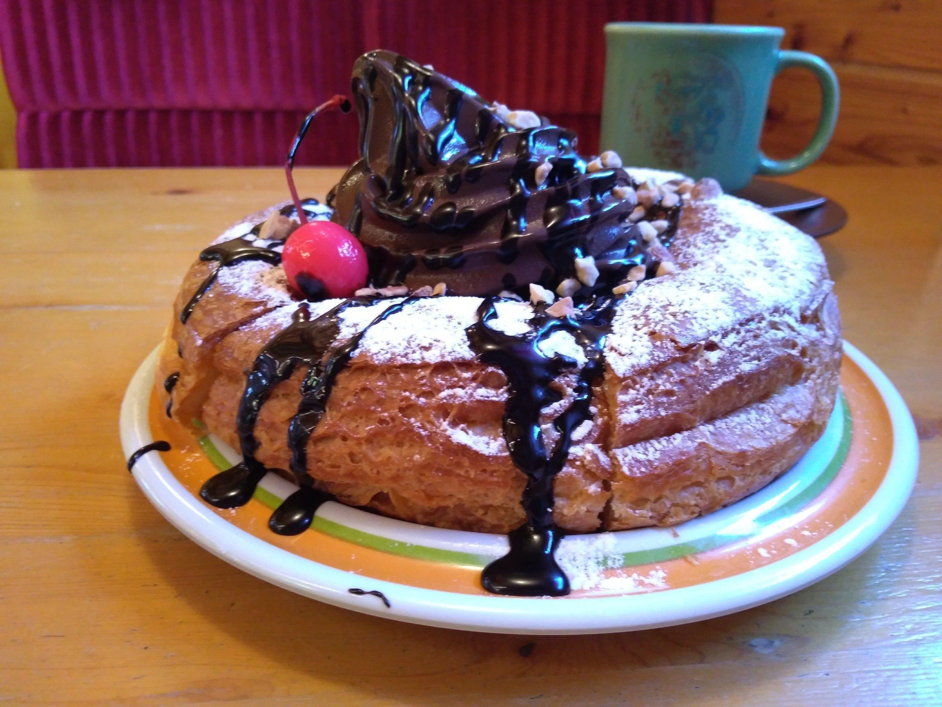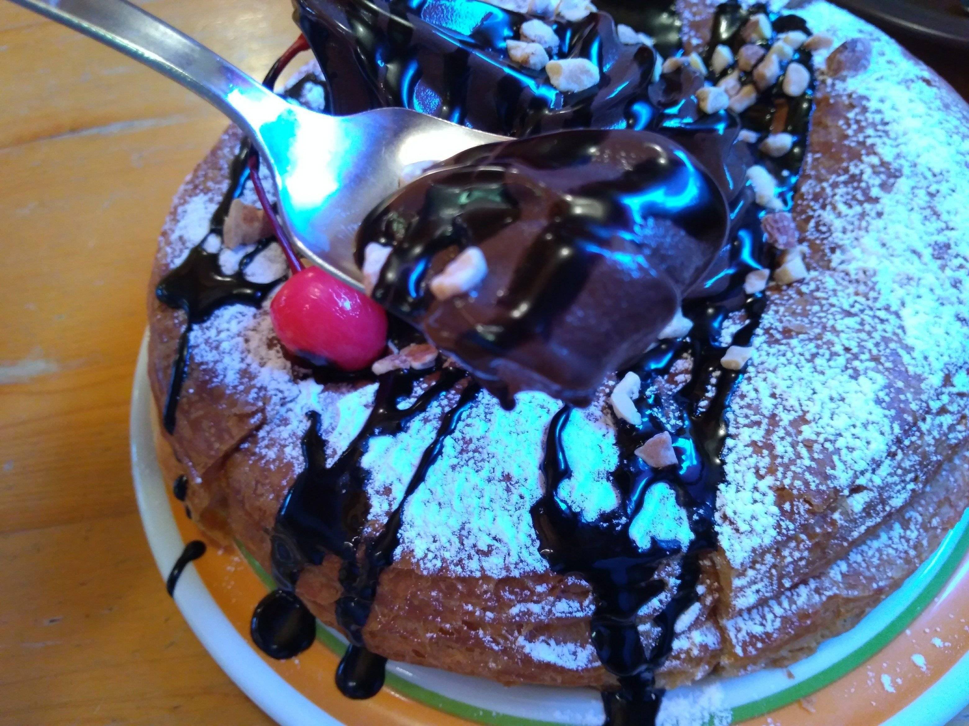 トッピングされたチョコレートソースはビターめで、全体的に味を引き締めている感じ。