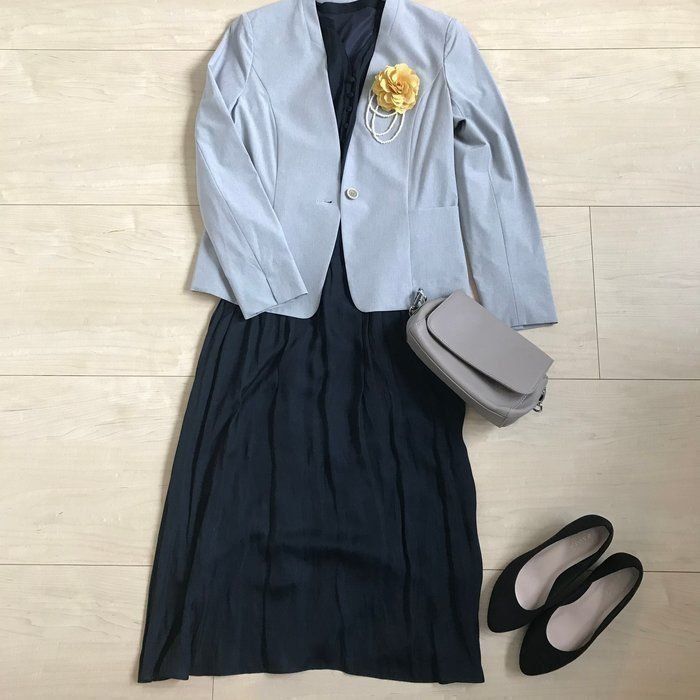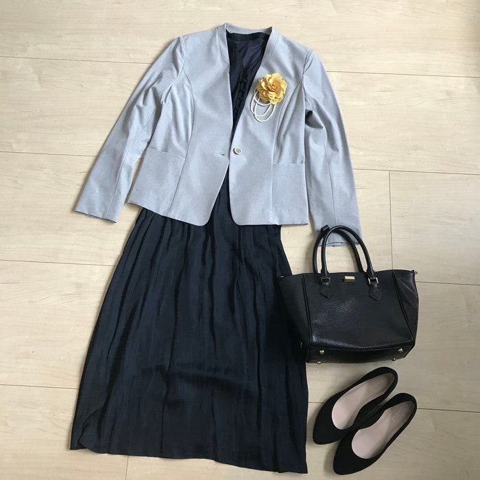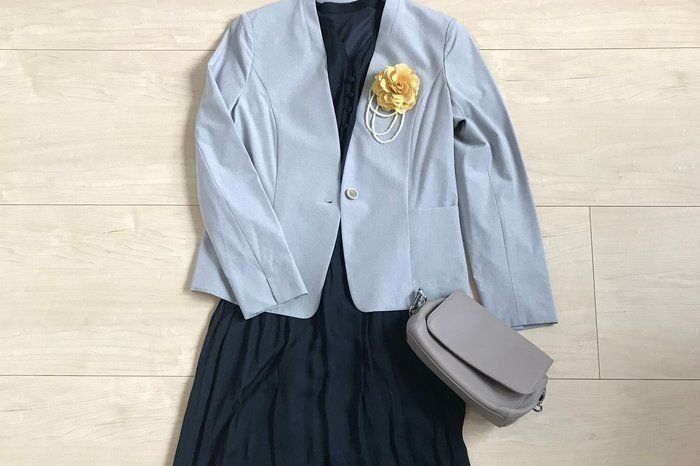 参加する場所の雰囲気にもよると思いますので、一枚もっておくと安心かもしれません。ちなみに、以前このグレーのジャケットの下にブラックフォーマルのワンピースを着ました。ジャケットもシンプルな形なので使いやすいです。シンプルな物の組み合わせですが、色で変化をつけてシンプルすぎないコーデに。