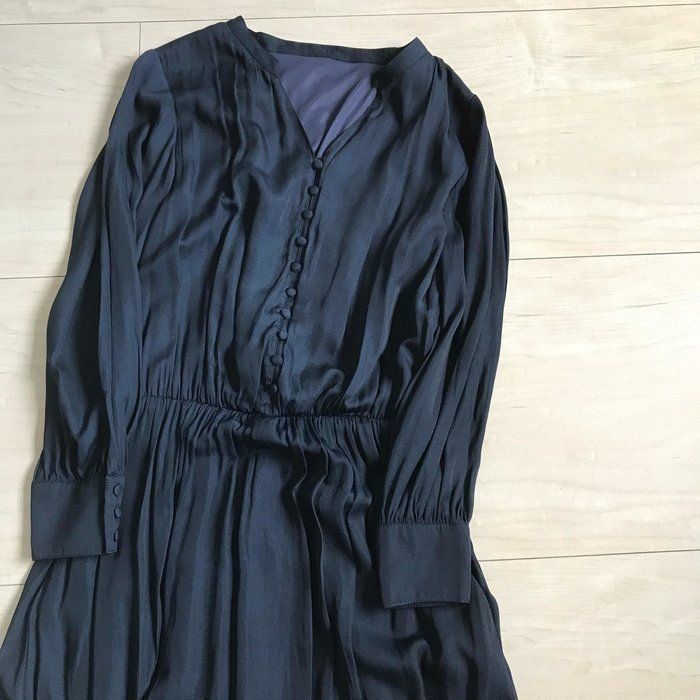 筆者が入園式でメインに着ることにしたのは、こちらのワンピース。1年ほど前に家族で結婚式に招待された際に購入したワンピースです。シンプルなネイビーのワンピース。安心安全の膝下丈もポイントです。