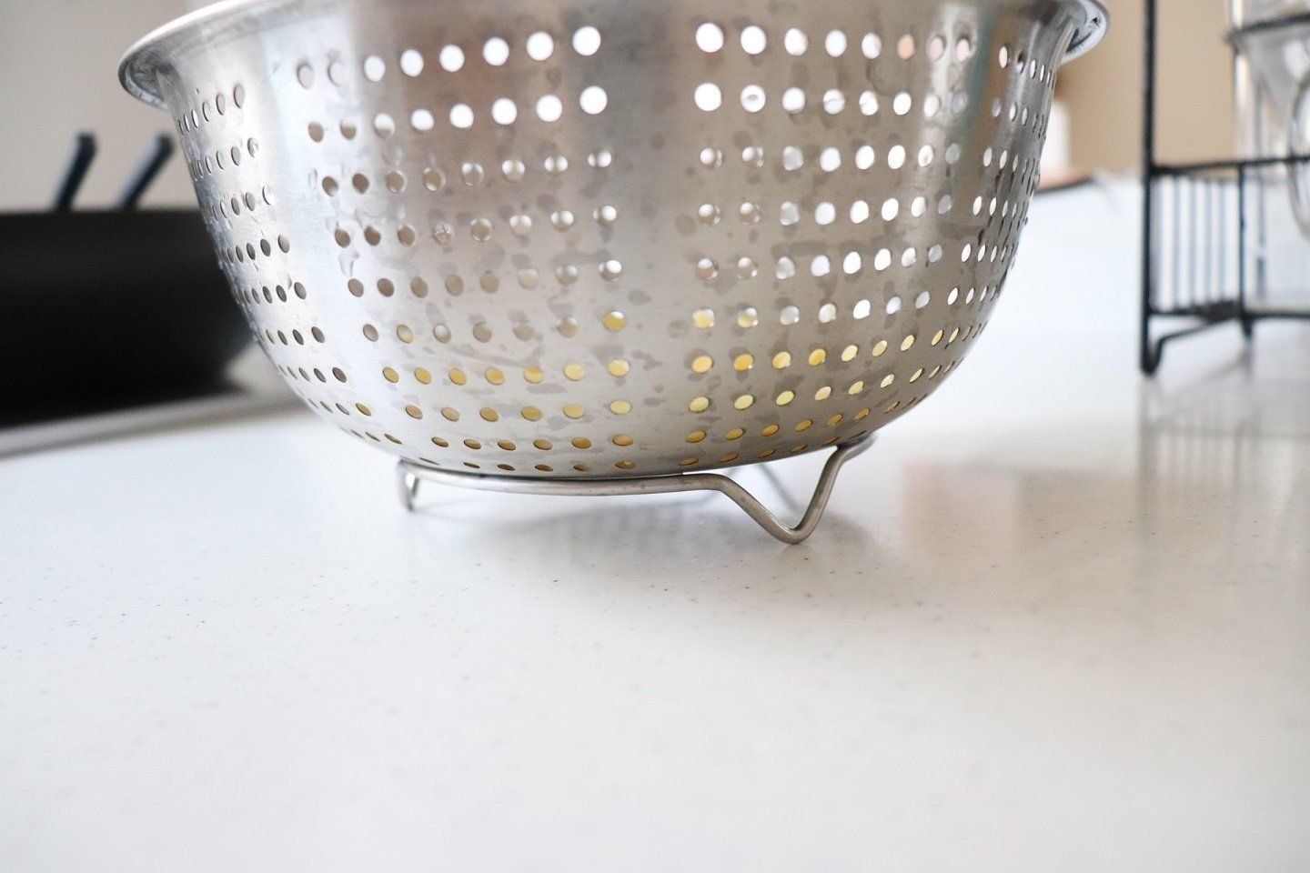 高さのある足のおかげで、ザルだけで湯切りしてもお湯が下にたまらないのもうれしい!
