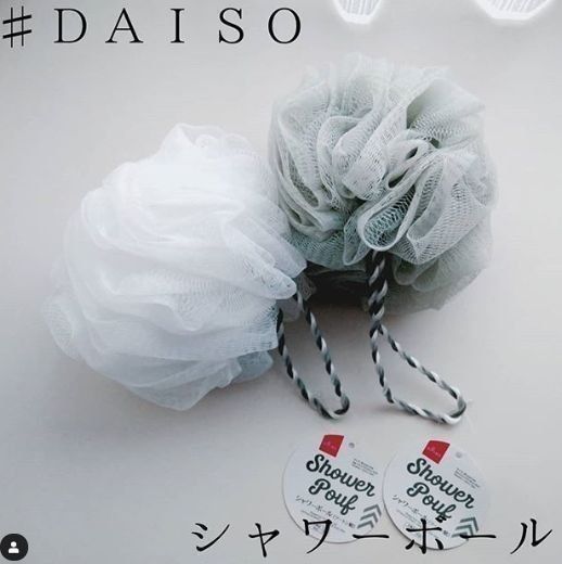 こちらはダイソーで手に入るモノトーンのシャワーボールです。シャワーボールというと、ピンクやブルーなど、鮮やかなカラーをよく見かけますが、こちらはシンプルでおしゃれですね。