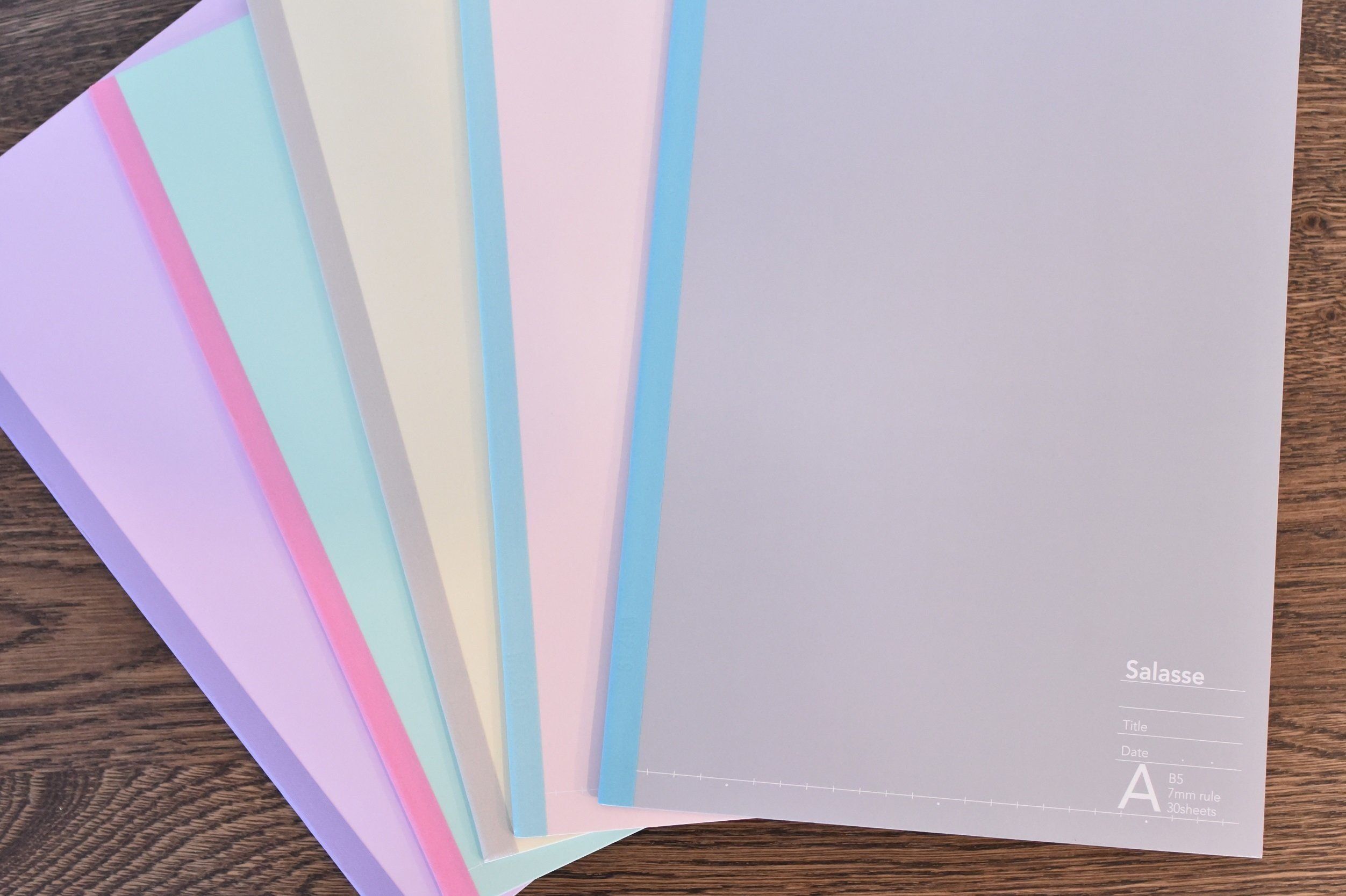 そして、色もシンプルでかわいい。7mmA罫は、パステルカラーの5色組。