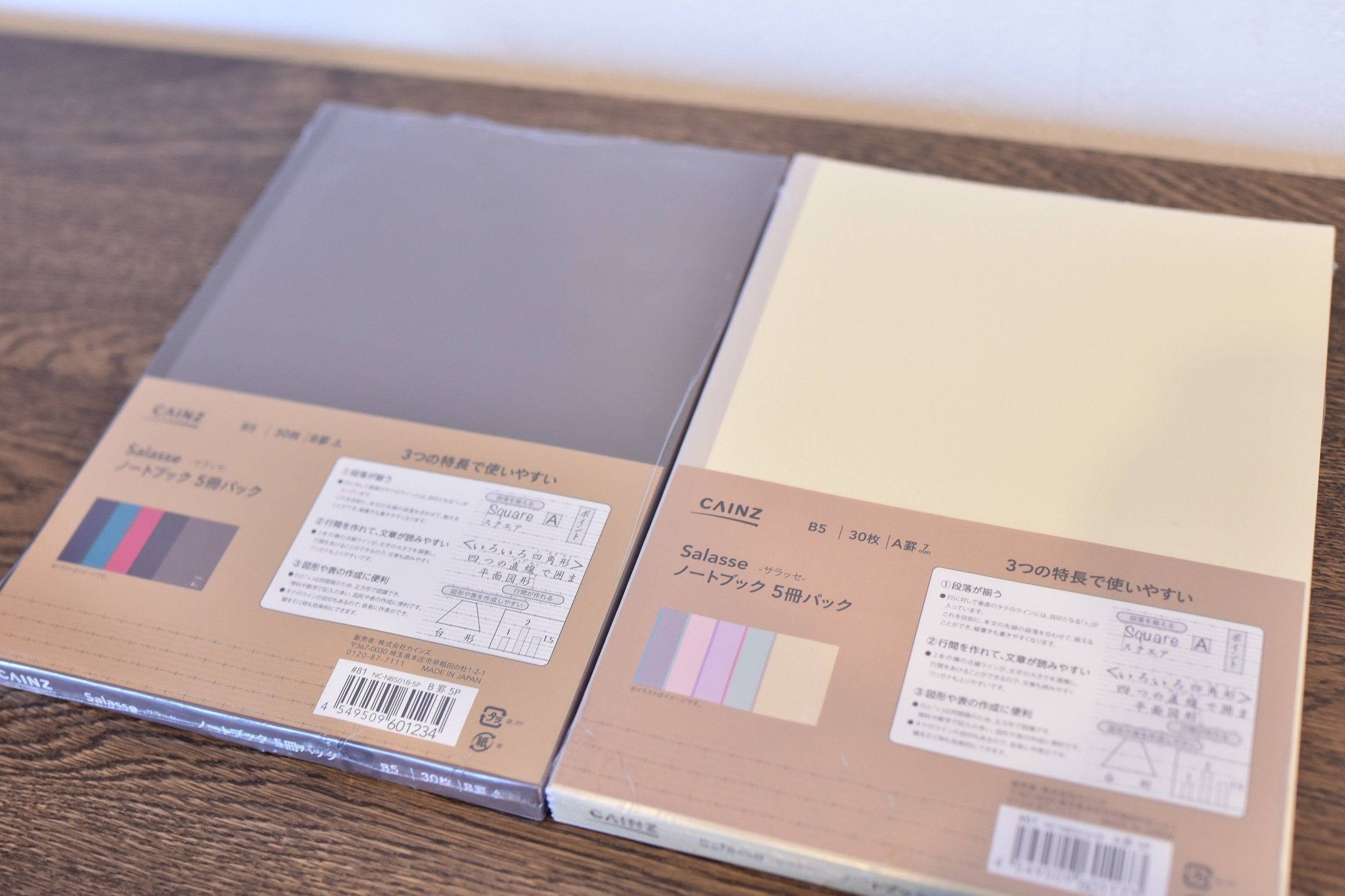 主に中学生から使い始める横線のノートは、5冊組で298円(税込)。1冊約60円の計算になります。