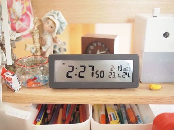 というわけで娘のデスクに設置!いい感じです。秒数も刻んでくれるのでこれで時間の概念が少しずつでも身に着けばいいなと淡い期待をしております…湿度がなかなか低いようですが、そのあたりの指標にもなりいいですね。めちゃくちゃおすすめです!