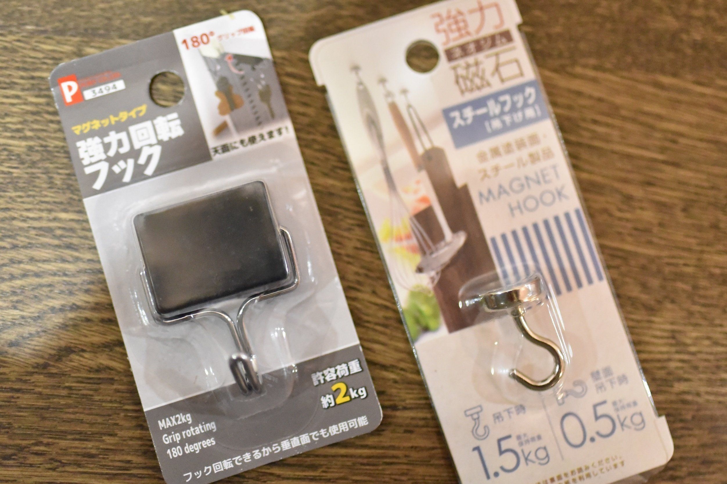 100円均一には、ご紹介した2種類以外にもたくさんの種類のマグネットフックが販売されています。使う場所や、用途に応じてお好みのものを探してみてください。複数個のマグネットを組み合わせて使ったり、ひもやツッパリ棒を組み合わせて使ったり、オリジナルの使い方を楽しむのもいいですね。