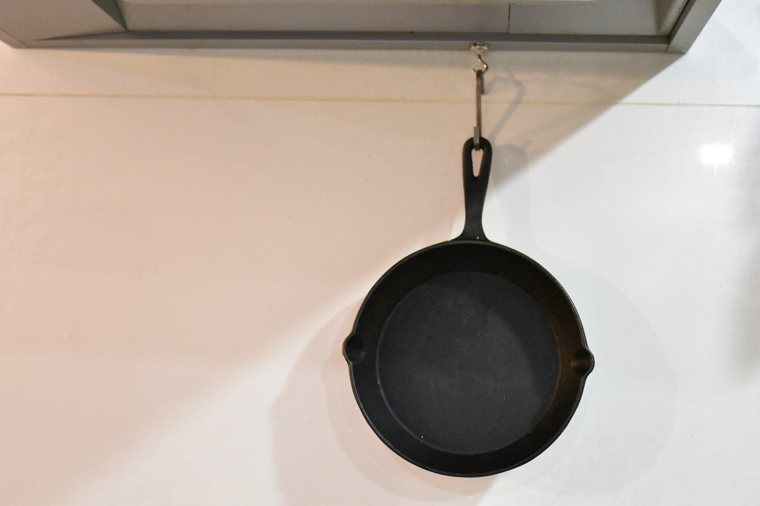安定した接着力で、吊り下げることができました。スキレットの重さに耐えられるのですから、お玉やトングなどのキッチン用品を安心して吊り下げられそうです。