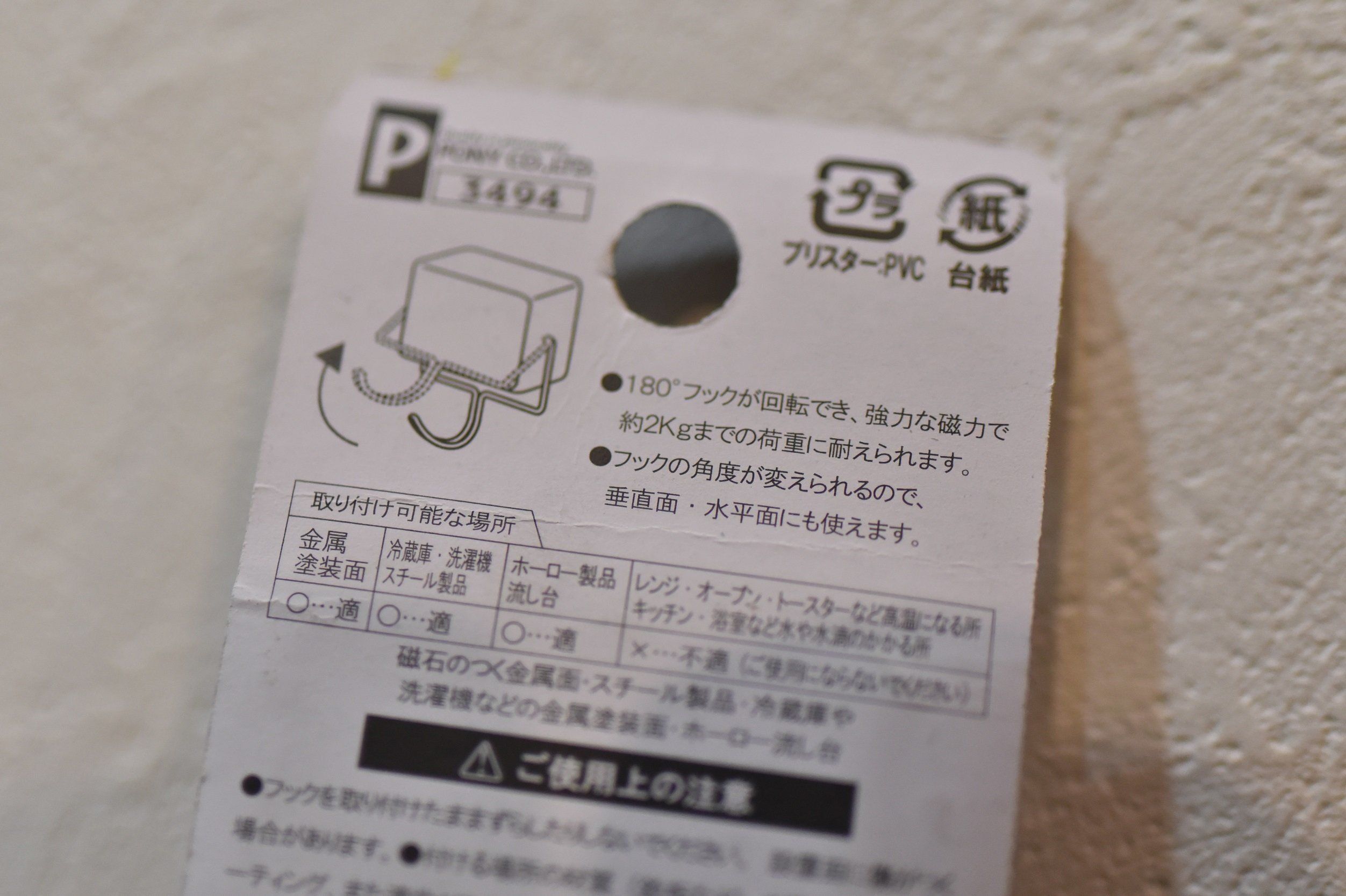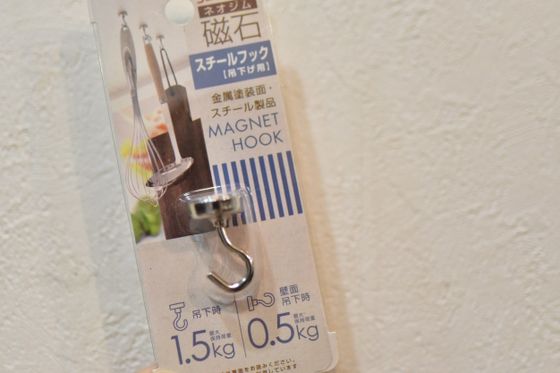 磁石部分が直径1cmほどしかなく、強力なのにコンパクトサイズなので、キッチンの換気扇にぶら下げるのに最適です。
