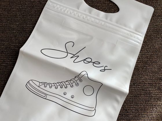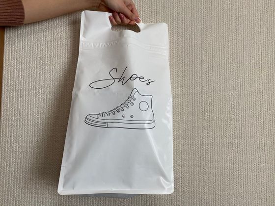持ち手があって、さらに内部に密閉するためのチャックが用意されているのも魅力。ぬれた靴を入れるときや、旅行などの移動でほかの荷物といっしょにキャリーバッグに入れたいなどの場合はとても助かりますね。ちなみに、20cmくらいまでの子ども靴なら、横方向にすれば2足分入れられますよ。