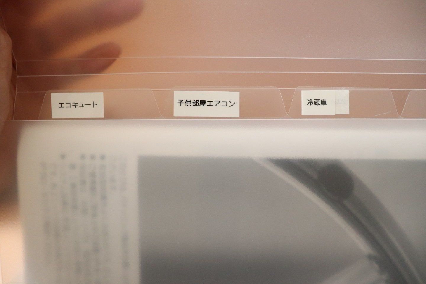 後ろ側には保証期限がいつまでかもいっしょに貼ってあります。これで保証期限もファイルの上の部分を見るだけで一目瞭然。