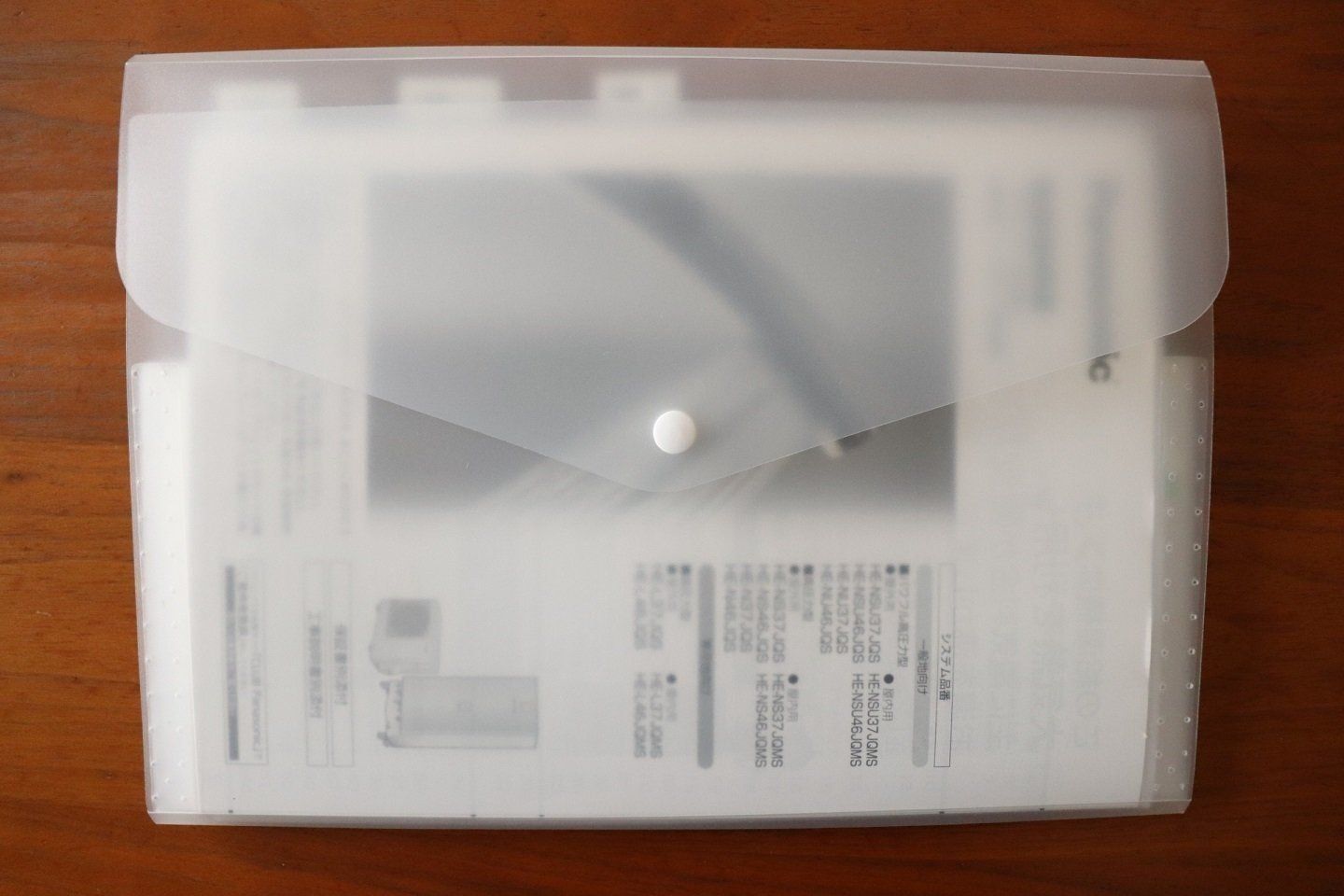 我が家では今までビニル型のファイルに取説を入れていたのですが、厚みが出てくると保証書などが取り出しづらい……というわけで、ダイソーの蛇腹型のファイルへ変更してみました。A4サイズが入るので取説もバッチリ入ります。