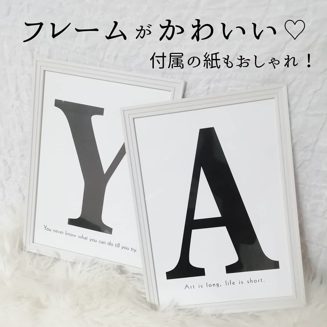 インテリア初心者さんにおすすめなのが、壁にかけるだけでおしゃれに見えるモノトーンのフレーム。キャンドゥの額縁は、高見えな立体型のフレームにおしゃれな英字ロゴ入りでそのまま飾ってもおしゃれ!グレー寄りのホワイトカラーなので、さりげなく大人っぽさを演出してくれます。