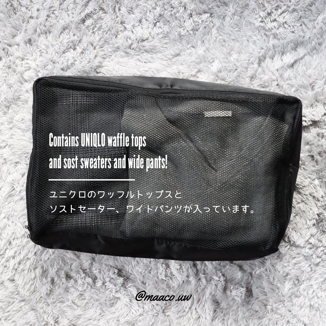 旅行や小物の収納も、モノトーンのケースに入れることで見た目がスッキリしてイライラもなくなりそうですね。キャンドゥのトラベルケースは、見た目が真っ黒だけど通気性のいいメッシュ生地なので中身が見えるがのうれしいポイント!スタイリッシュで大人っぽい荷造りに。