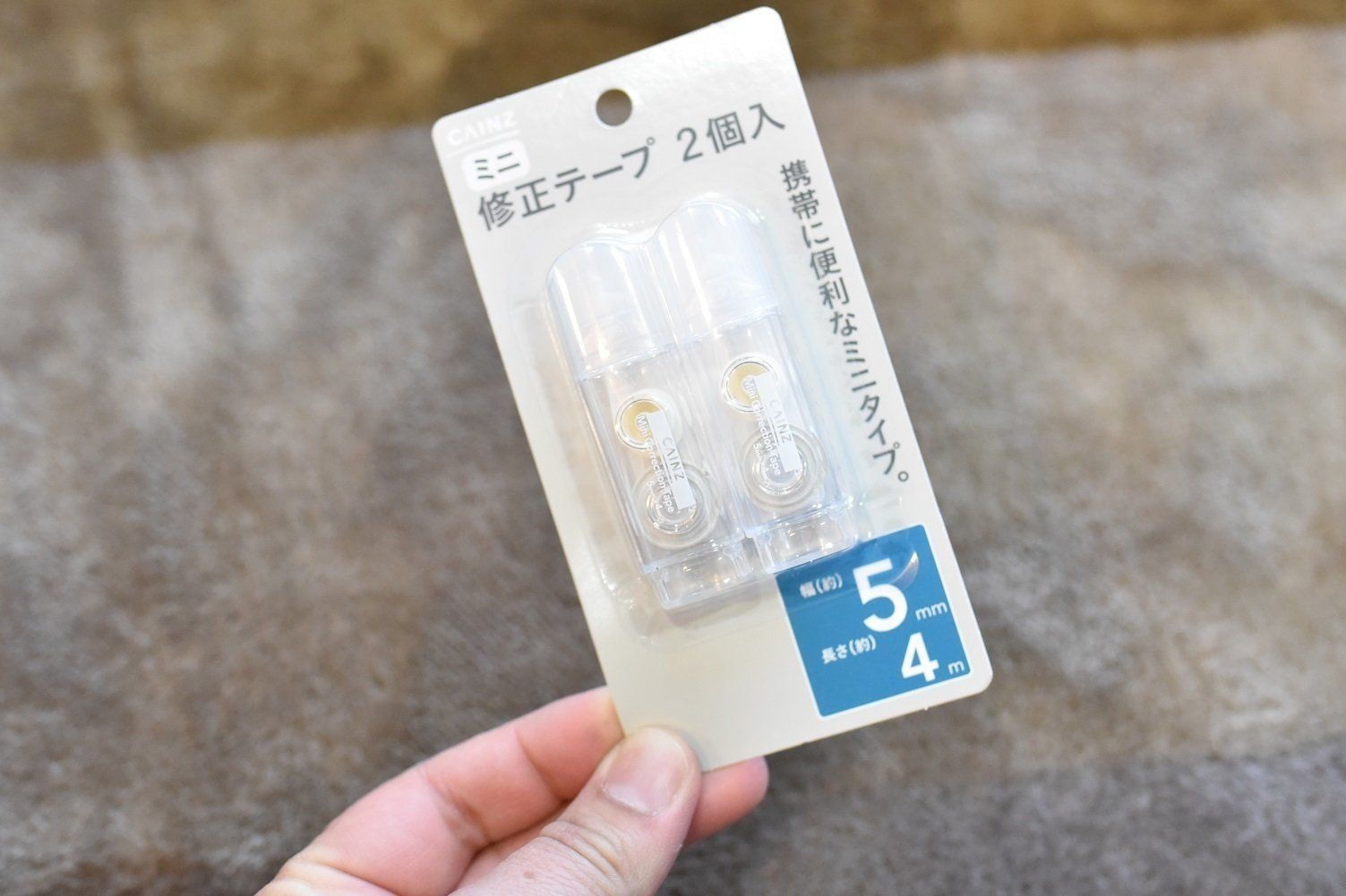 ミニ修正テープ2個入り148円。テープの長さが4mと短いですが、コンパクトで持ち歩きに便利。