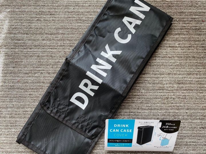 続いて紹介するのは、ドリンク缶ケースカバー。黒い布地に「DRINK CAN」という文字が書かれた、シンプルなデザイン。素材はナイロン製で、とても軽いです。