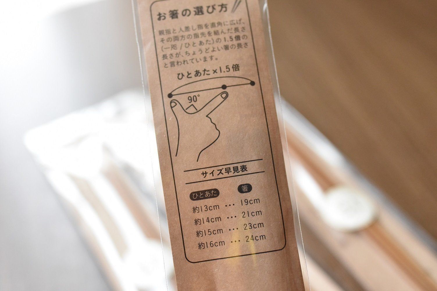 ニトリの「natural SIZE ちょうどいい、を見つける箸」は、4サイズ(19cm、21cm、23cm、24cm)あるので、手のサイズに合わせて選ぶことができます。