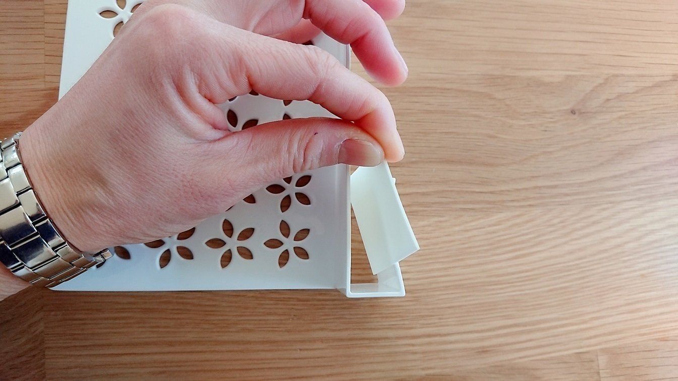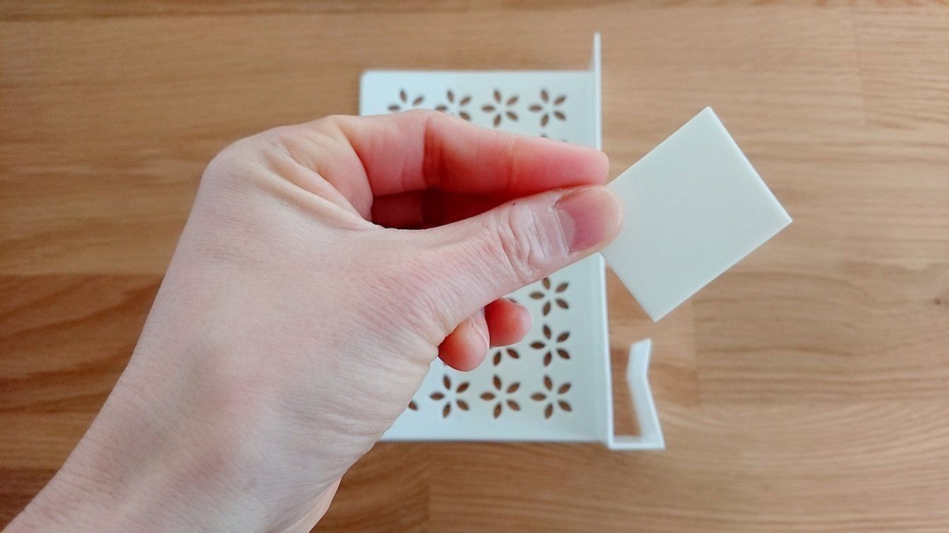 ちなみのこの商品、キズつき防止のクッションシートもついています。コの字のツメ部分につければ、棚板を傷つける心配も減ります。こういう配慮もうれしいところ。安心して使えます。