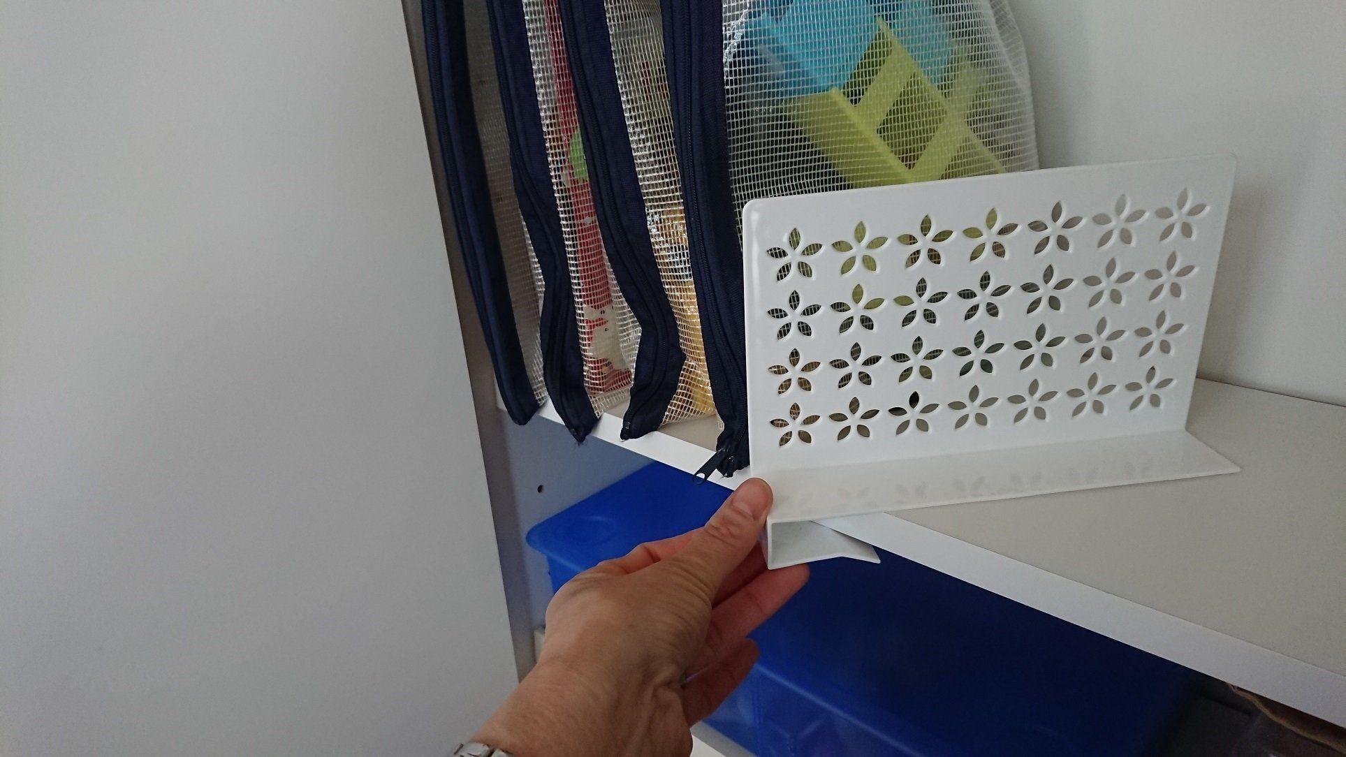 しっかり固定されるので、整理したいアイテムに合わせた間隔で仕切ることができます。また、しっかり固定されると言っても、子どもでの力で動かせる程度なので、調整を子ども自身がすることもできます。
