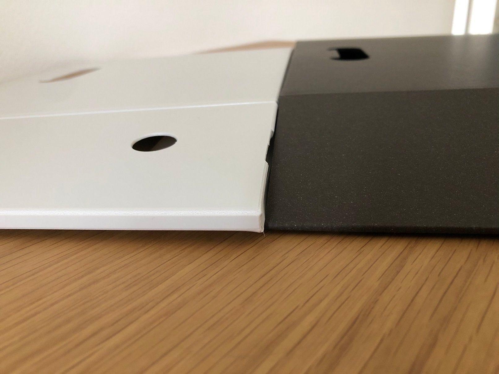 こちらは3枚入で1,290円(税込)と少し高めですが、丈夫で汚れにも強いので長く使えます。先程のダンボール製と比べてみると、少し厚みがありますね。