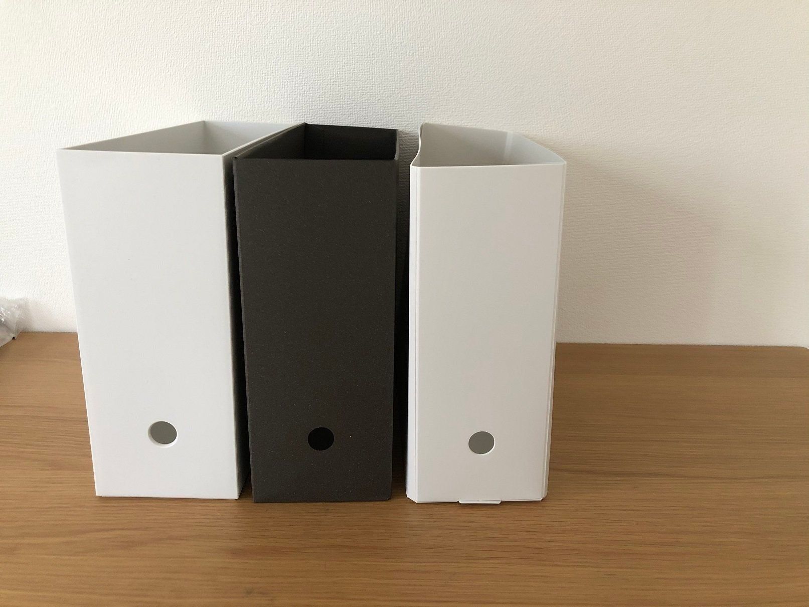 3つの素材がある書類の整理に役立つファイルボックス。どれもサイズ感は同じなので、用途によって使い分けられるように、複数種類持っておくのがおすすめです。