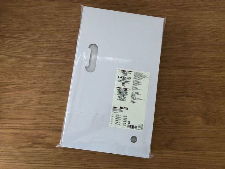 書類を整理したいなら、まず買いたいのがこちらの「ポリプロピレンファイルボックス・スタンダードタイプ」。色は半透明とホワイトグレーの2色で、しっかりとした作りです。490円(税込)とお手頃価格なのもうれしいポイント。