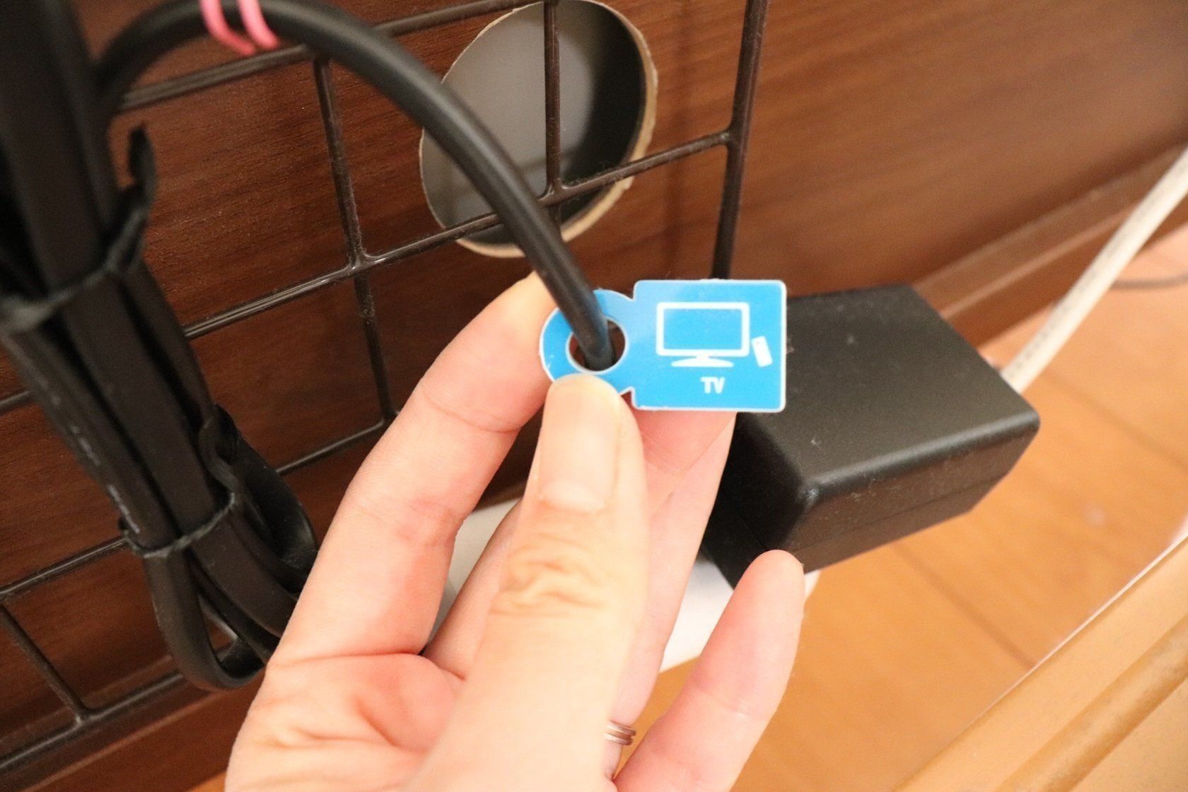ケーブルをまとめてクリップで引っ掛けておけばお掃除のときもケーブルが邪魔にならずすっきり!わが家ではコードになんのケーブルかもラベリングして一目で分かるようにしてあります。