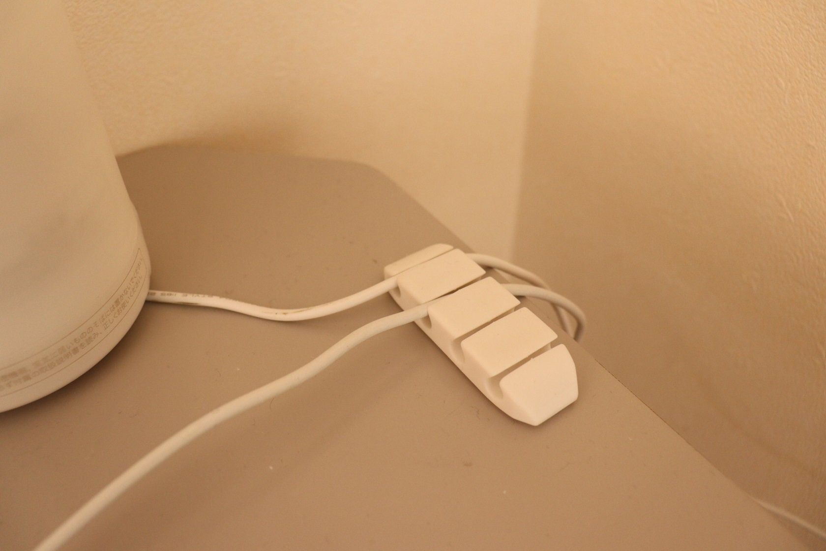 デスクの上の充電コンセントなどをすっきりさせてくれるのが「ケーブルクリップ 4本固定」。シンプルな色と形で、机の上でも邪魔になりません。