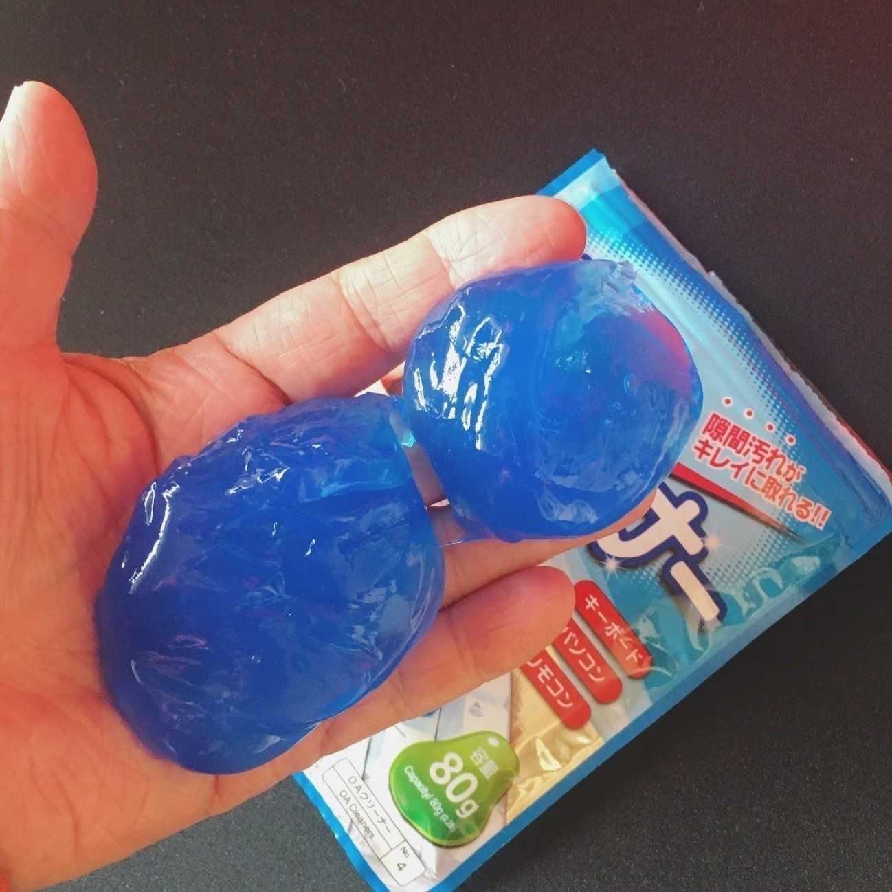ひと昔前に流行した“スライム”という玩具をご存知でしょうか。「どろーっ、ぬるーっ」としているのに、手にくっつかない不思議な物体でした。「ジェルクリーナー」は、言ってしまえばそのスライム。子ども向けの玩具を、お掃除道具に使ってしまおうという発想なわけですね。