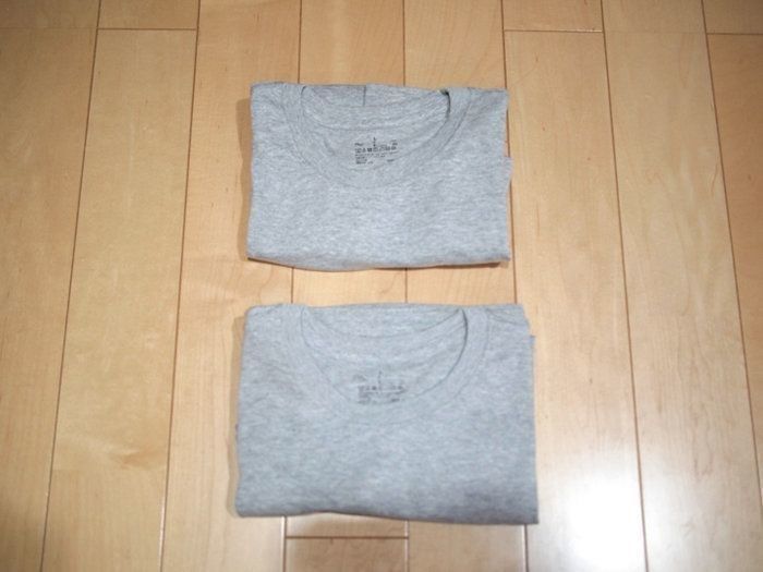 とても嬉しかったのが990円(税込)で2枚組というところ。しっかりとしたものが2つ梱包されておりましたよ!Vネックのものとクルーネックのものとあるようですが、我が家はクルーネックを選択いたしました。色もグレーと黒の2種類の展開があります。