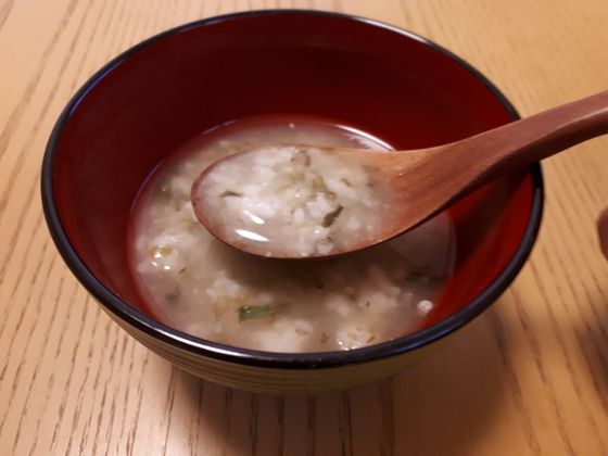 そして、この塩おにぎりは、無印良品の「食べるスープ」シリーズとの相性が抜群!私は、塩おにぎりを2等分にして、半分はそのまま、残りはスープに入れて食べるのが好きです。塩おにぎりをスープに入れる場合、スープは通常より少しだけお湯を多めに入れてつくると食べる時にいい塩加減になります。和風のスープと組み合わせると雑炊みたいで、お夜食にもピッタリですよ。