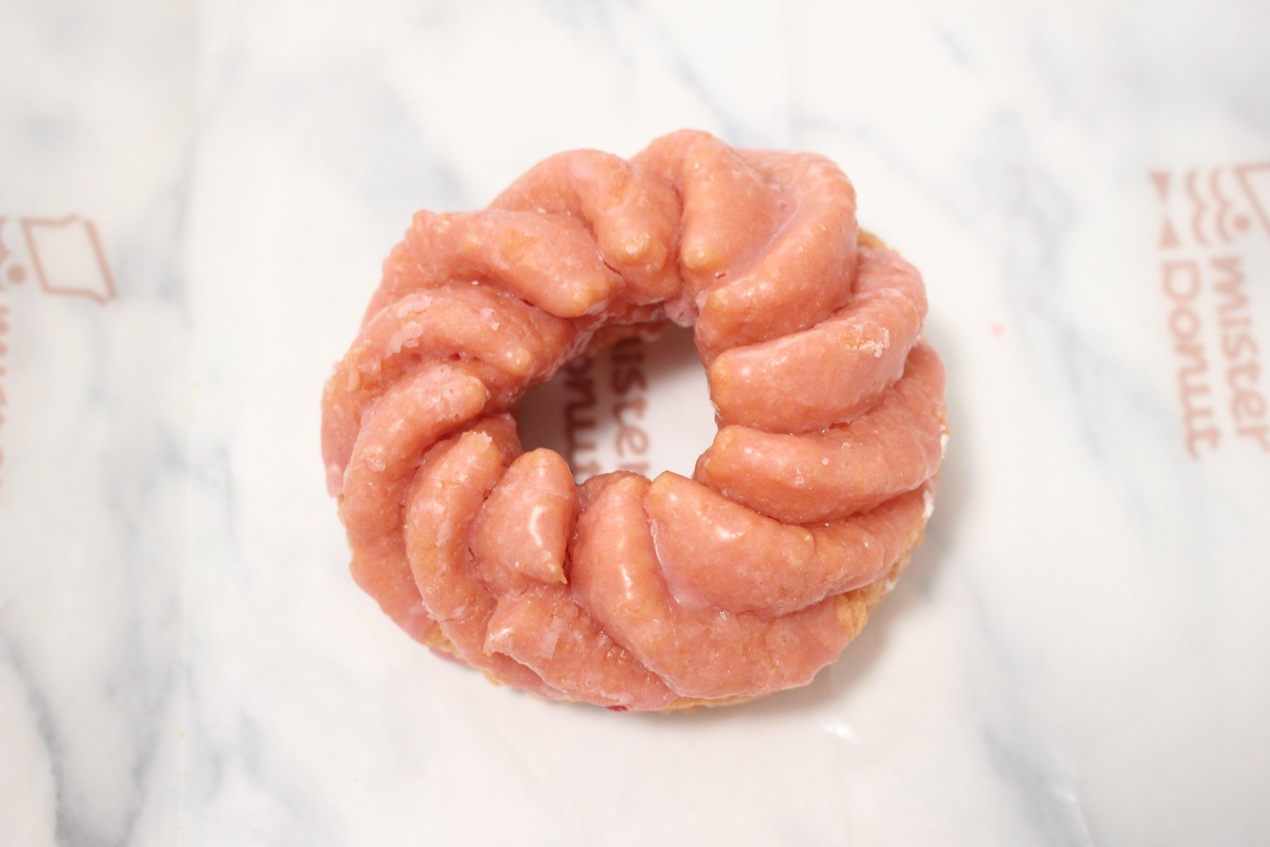 もちっとドーナツと同じグレーズを使ってますが、フレンチクルーラーの方が桜感は少なく感じました。