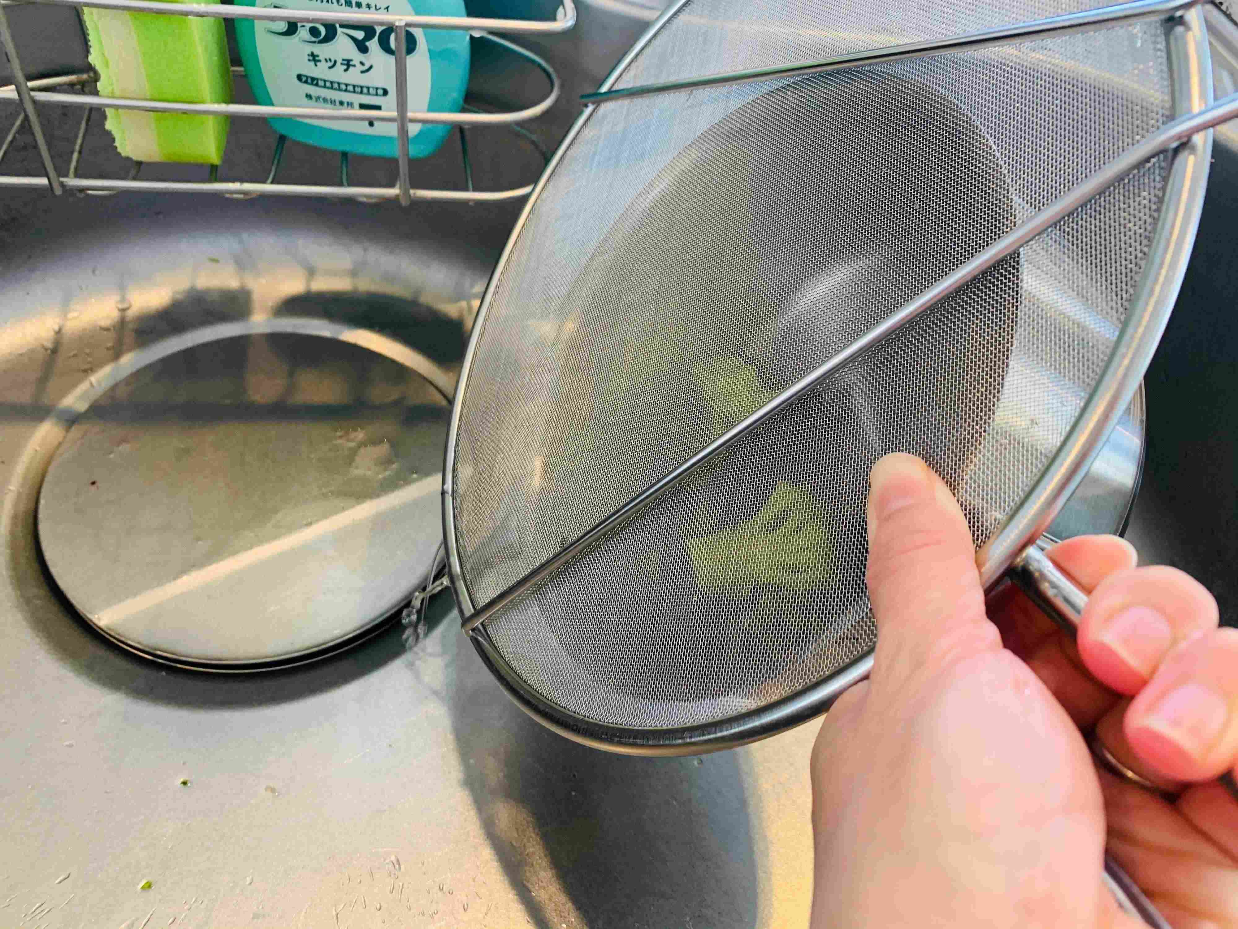 網目なのでこんなふうに、湯切り、水切りにも便利です!