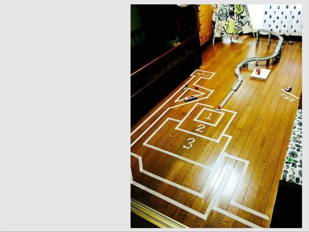 *マステで床材がハゲる可能性もあるので、気になる方はダンボールを広げてその上にコースを作ってみたり、という方法もあります。