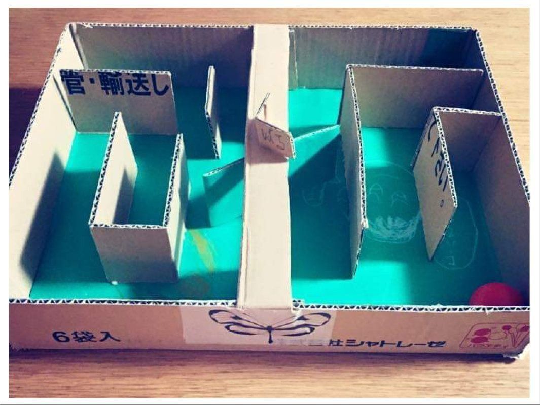 ダンボールと木工ボンドを使って立体的な迷路を作ってみるのはいかがでしょう。仕上がったら、スーパーボウルで迷路を進みます。