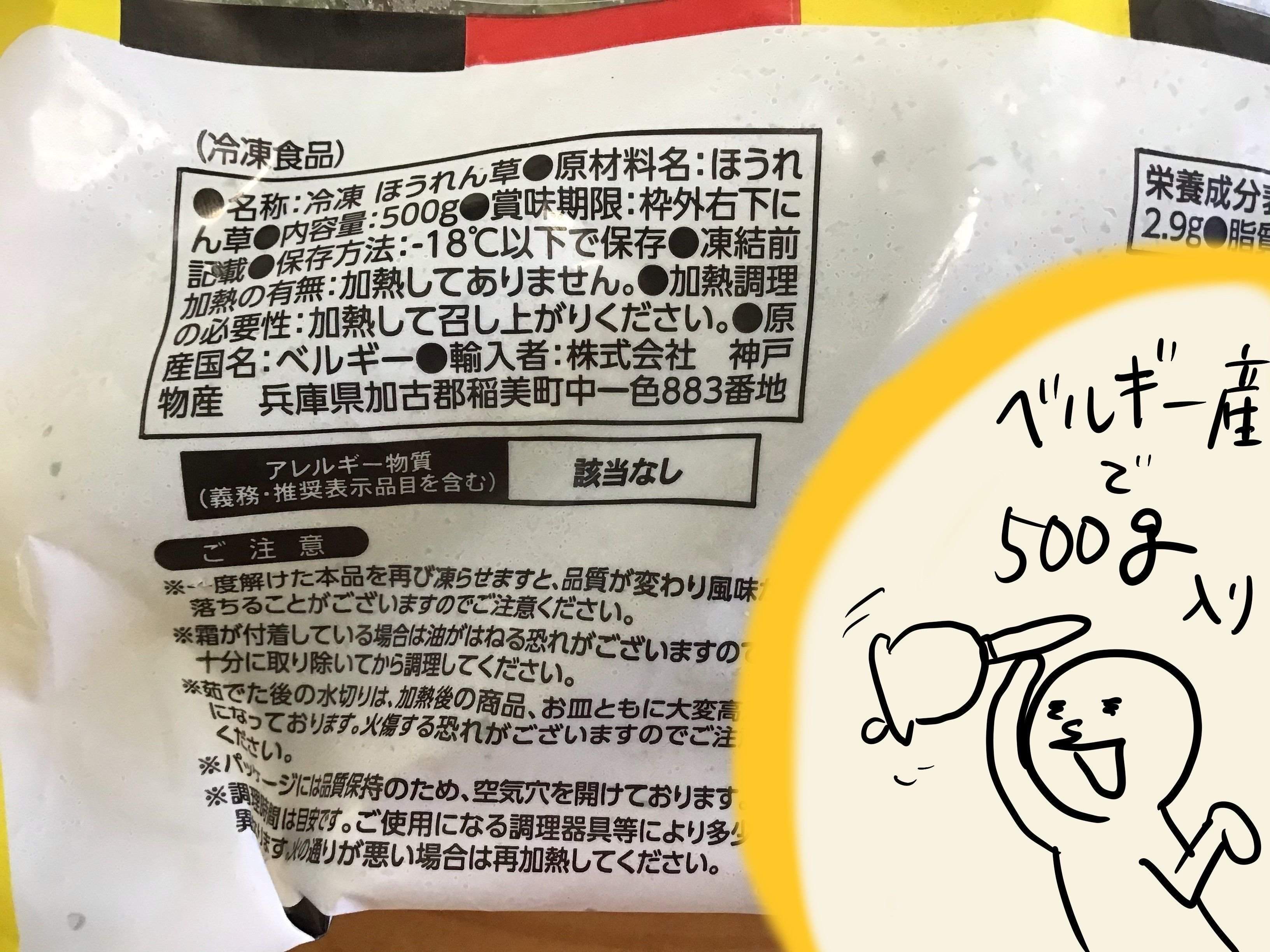 ベルギー産ほうれんそう。500グラム入りでお値段は……