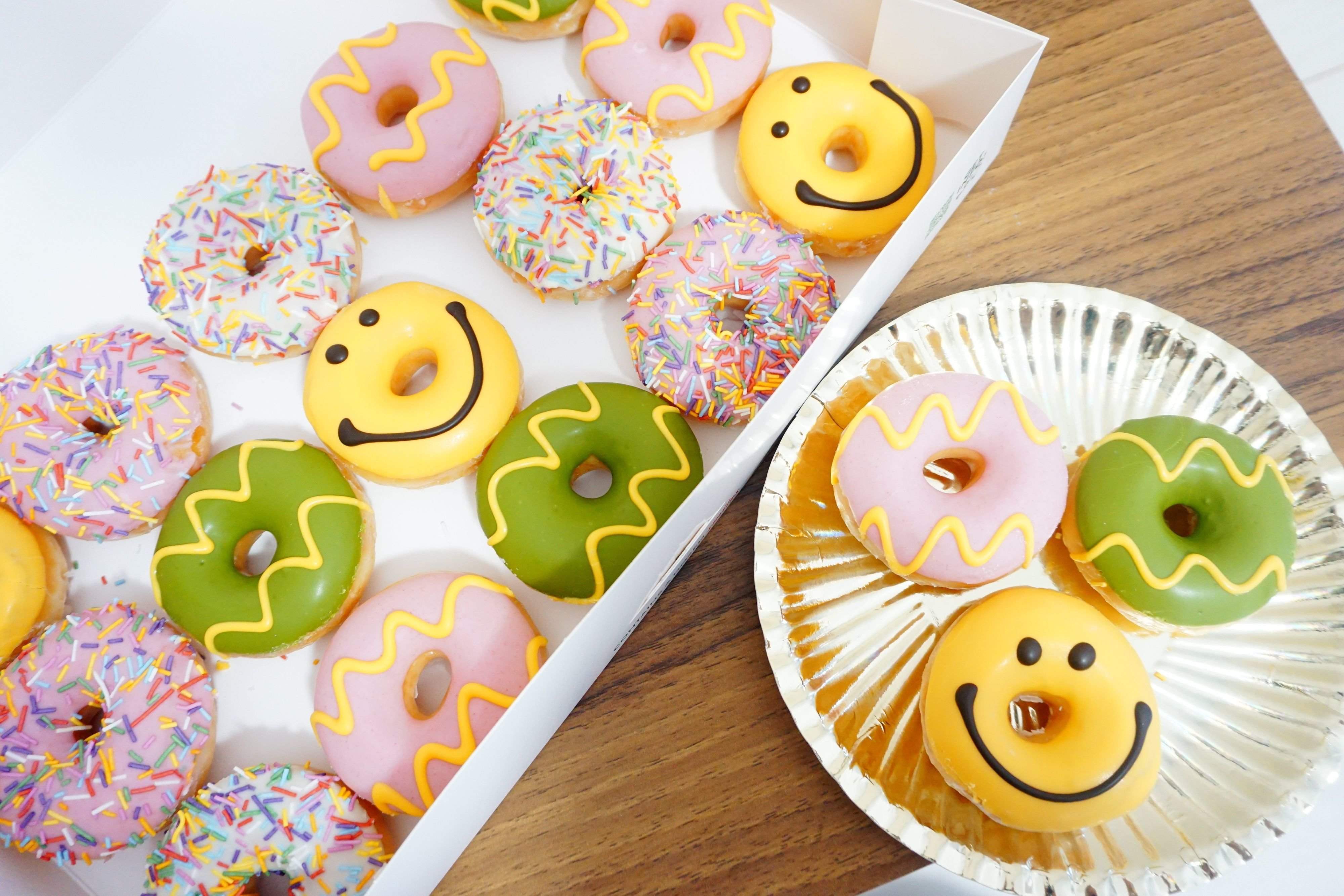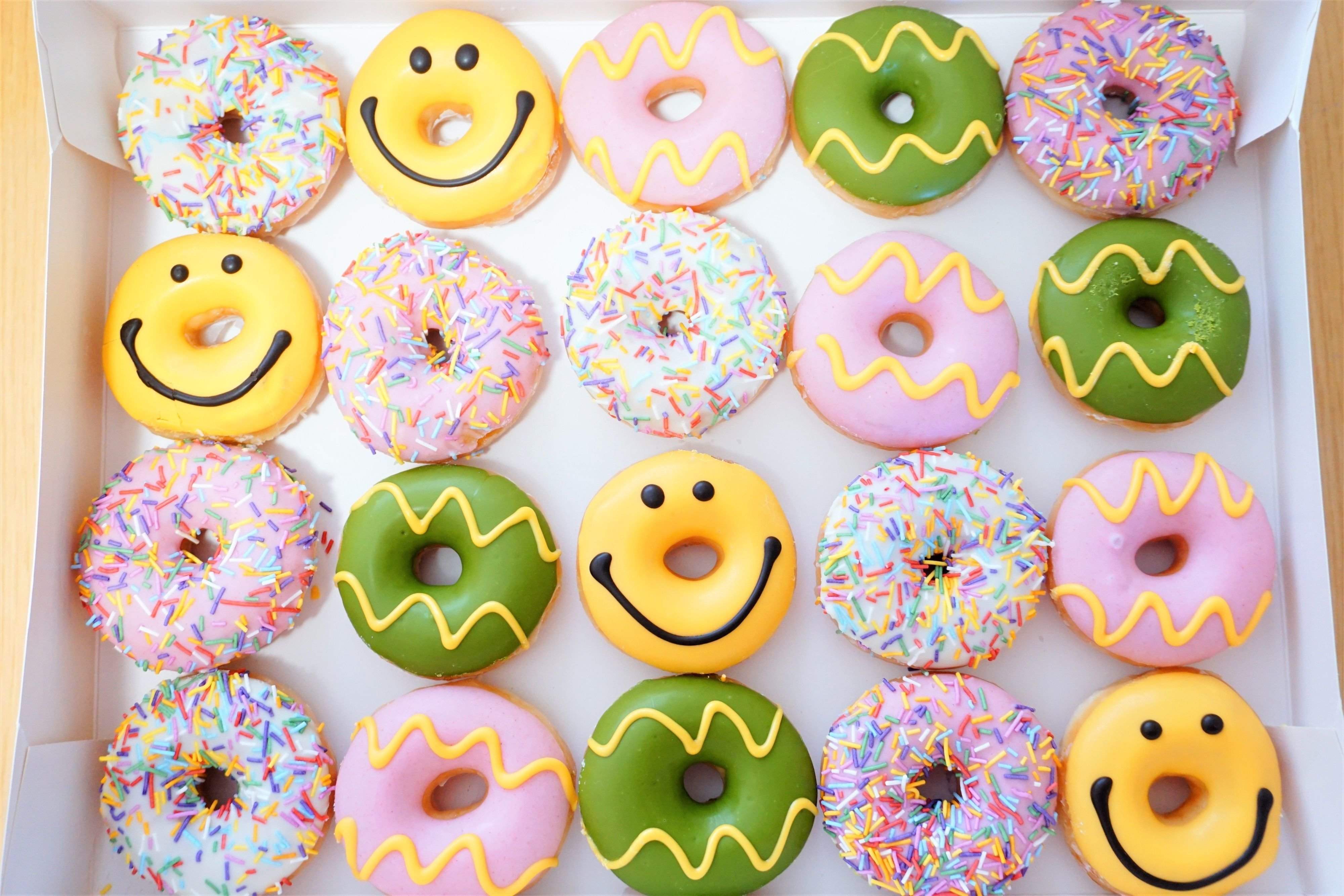 イースターエッグみたいなジグザグ模様、スプリングカラー、スマイル、キラキラスプリンクル。 小さくてもハッピーなおいしさでイースターを祝うミニドーナツ。 春が始まる20個入りで、楽しさはじけるミニパーティーを。