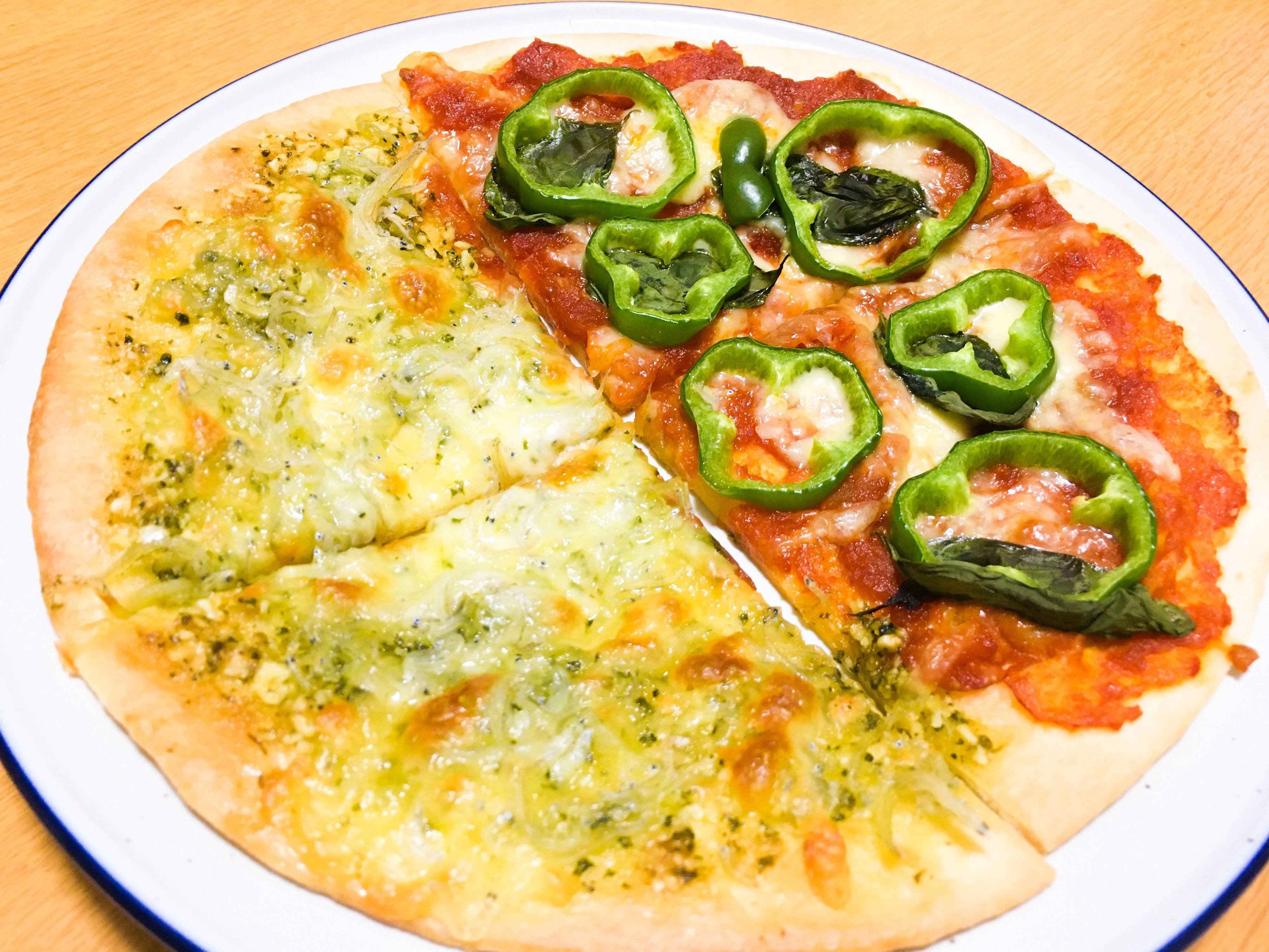 先日、手作りのジェノベーゼソースを作ったので、それを活用してピザを作ってみました!