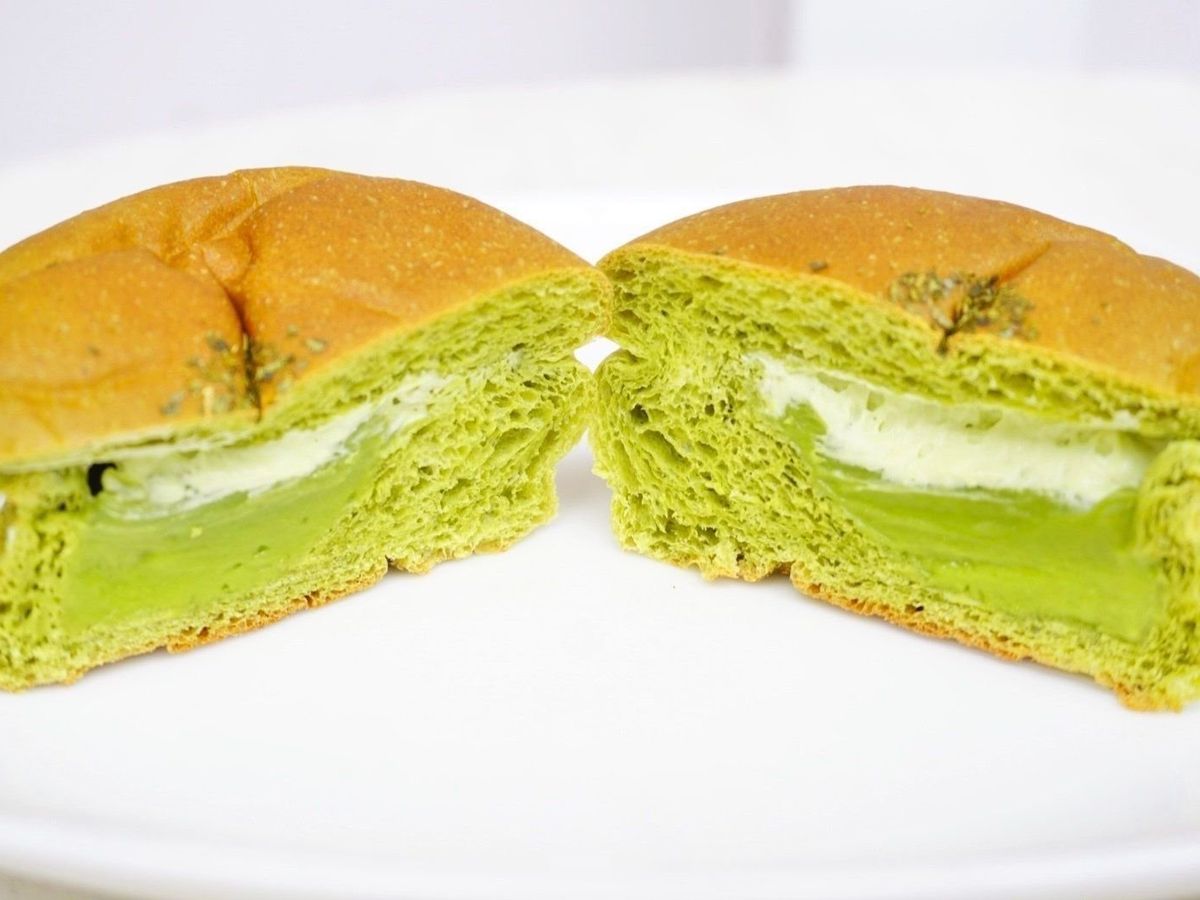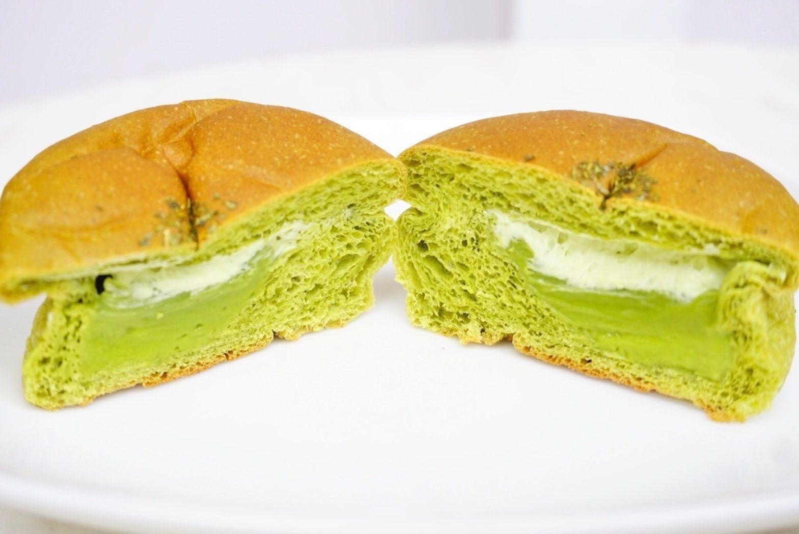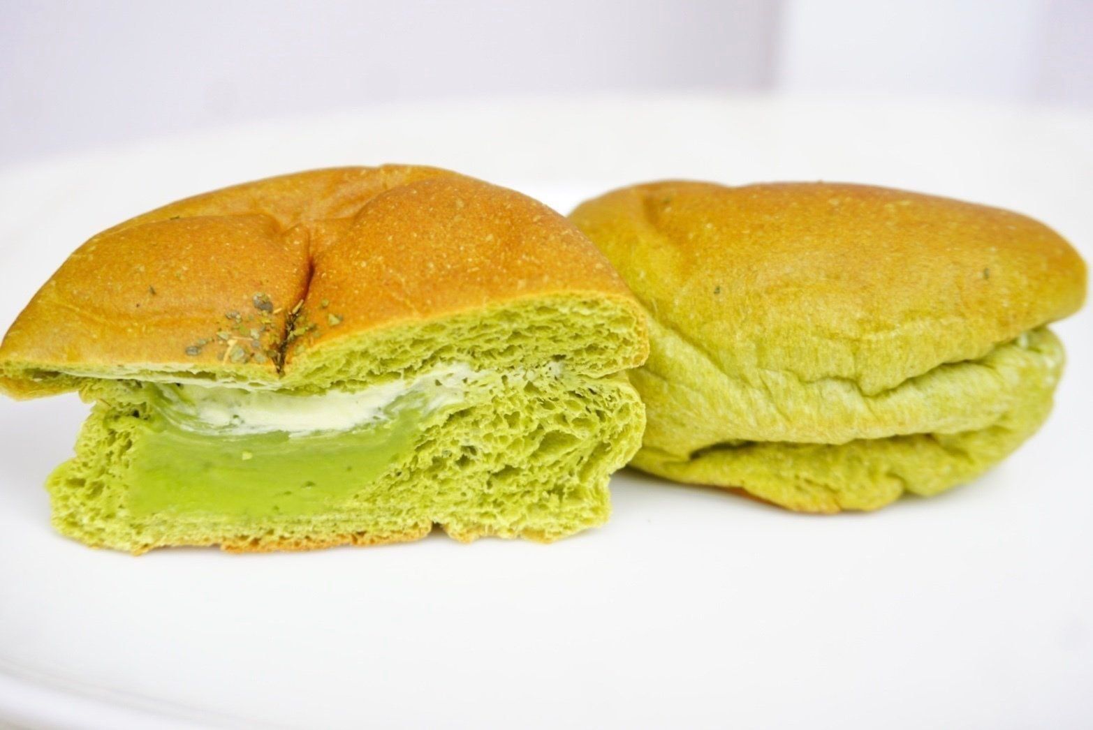 大麦を使用したパン生地に抹茶パウダーを練り込み、抹茶クリームを包んで抹茶ホイップクリームを注入した抹茶づくしのパンです。