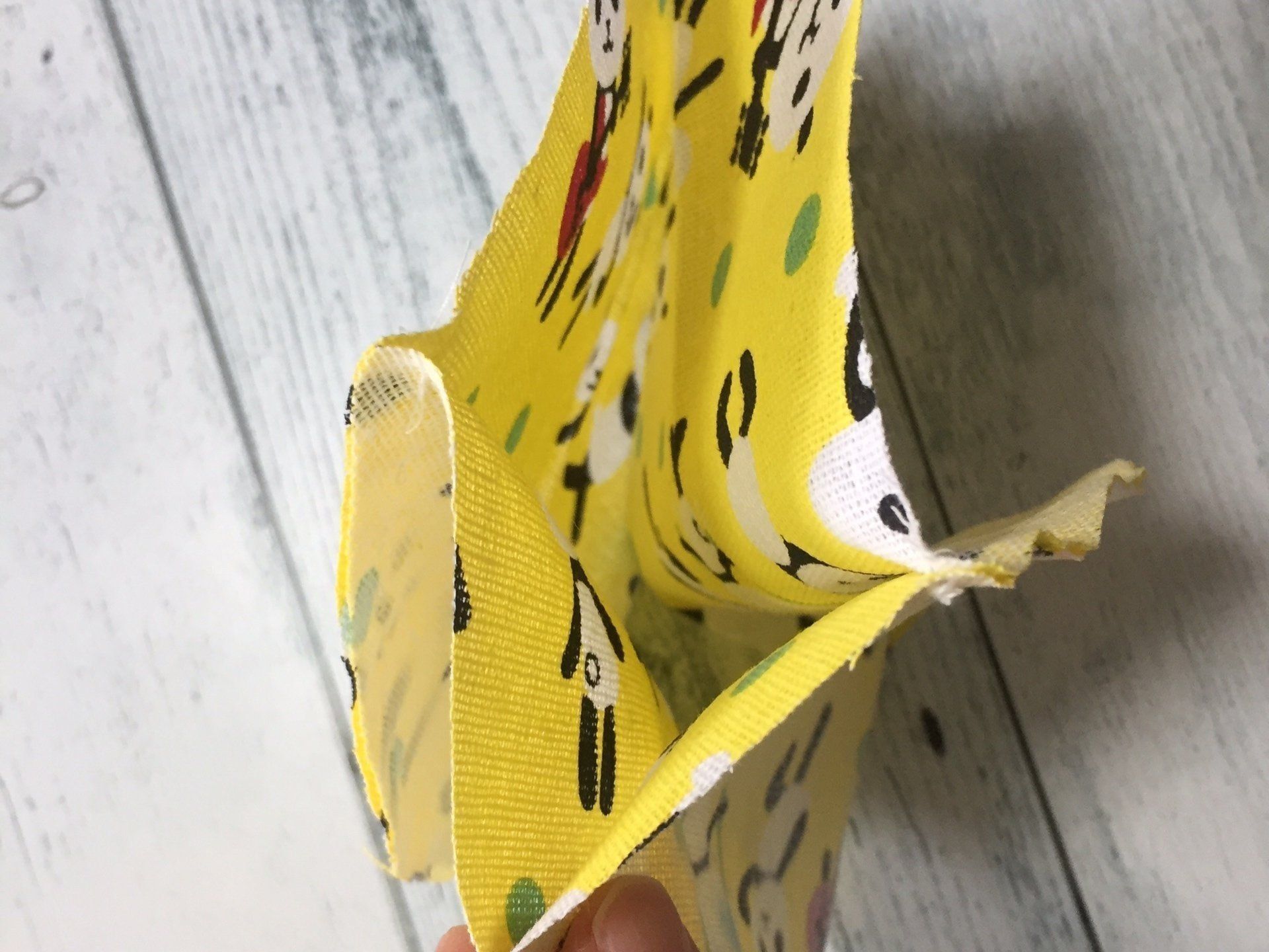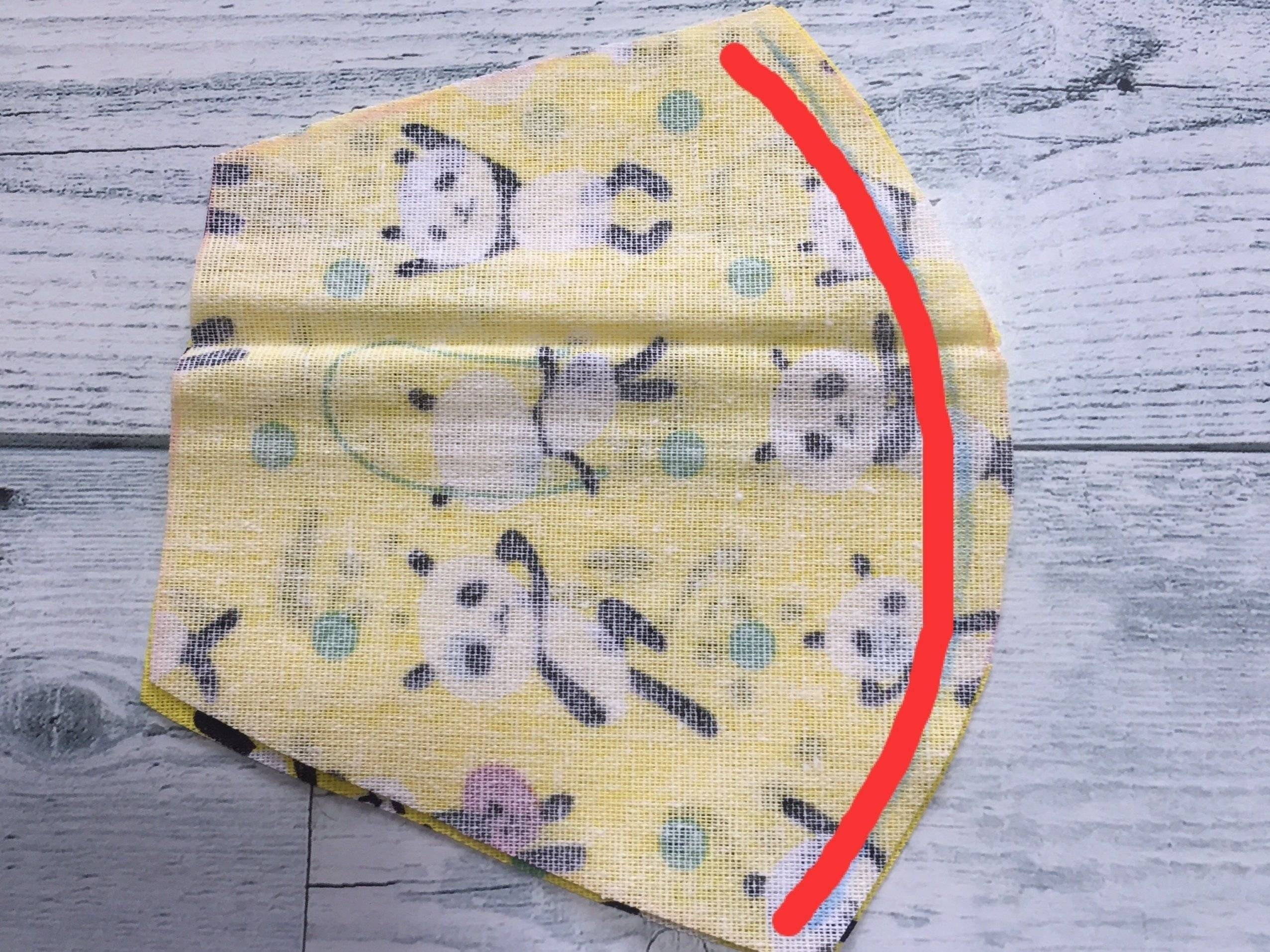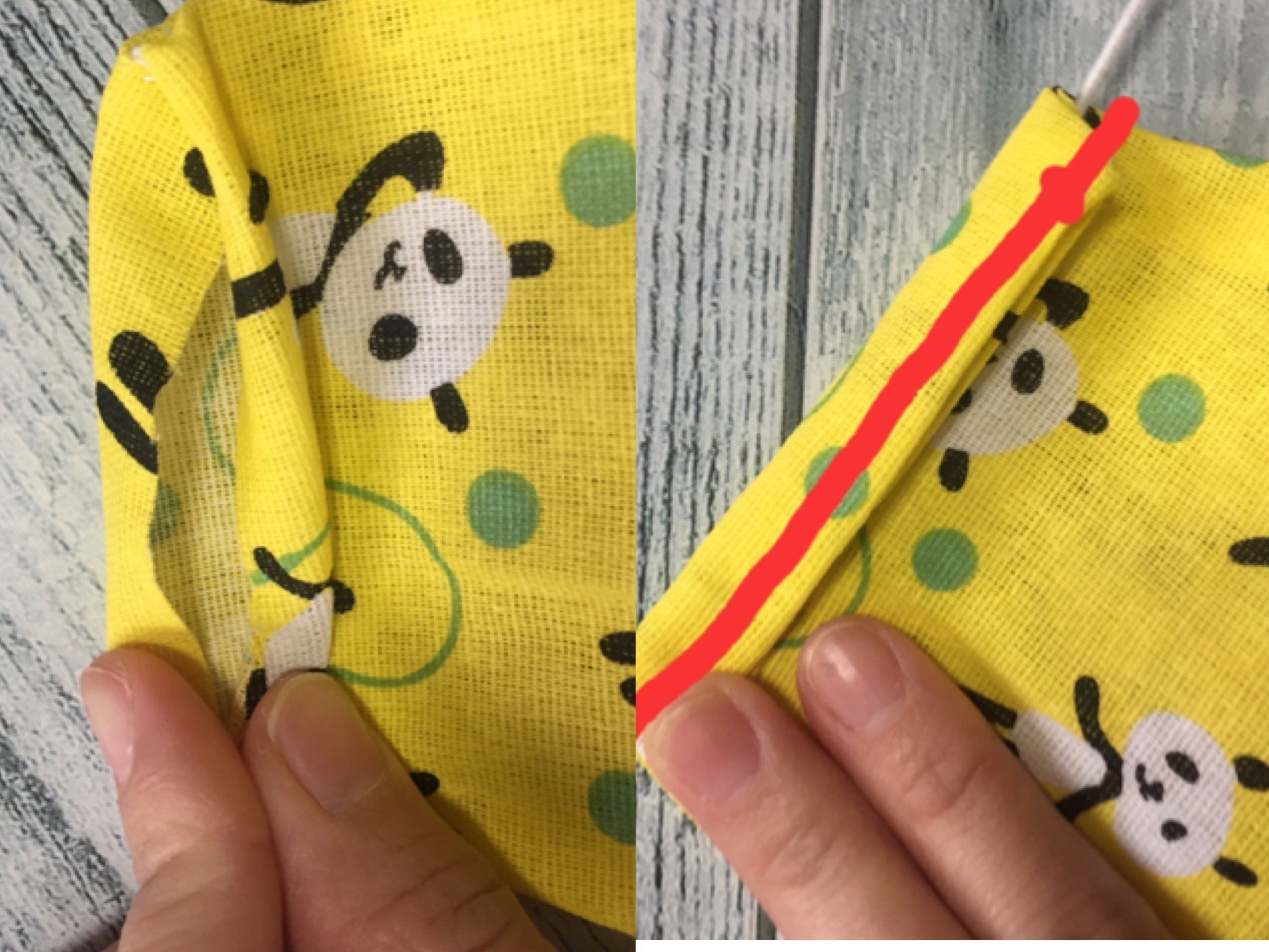 上下縫い合わせたら、マスクを表にひっくり返して、ゴムを通すサイドの部分を縫います。