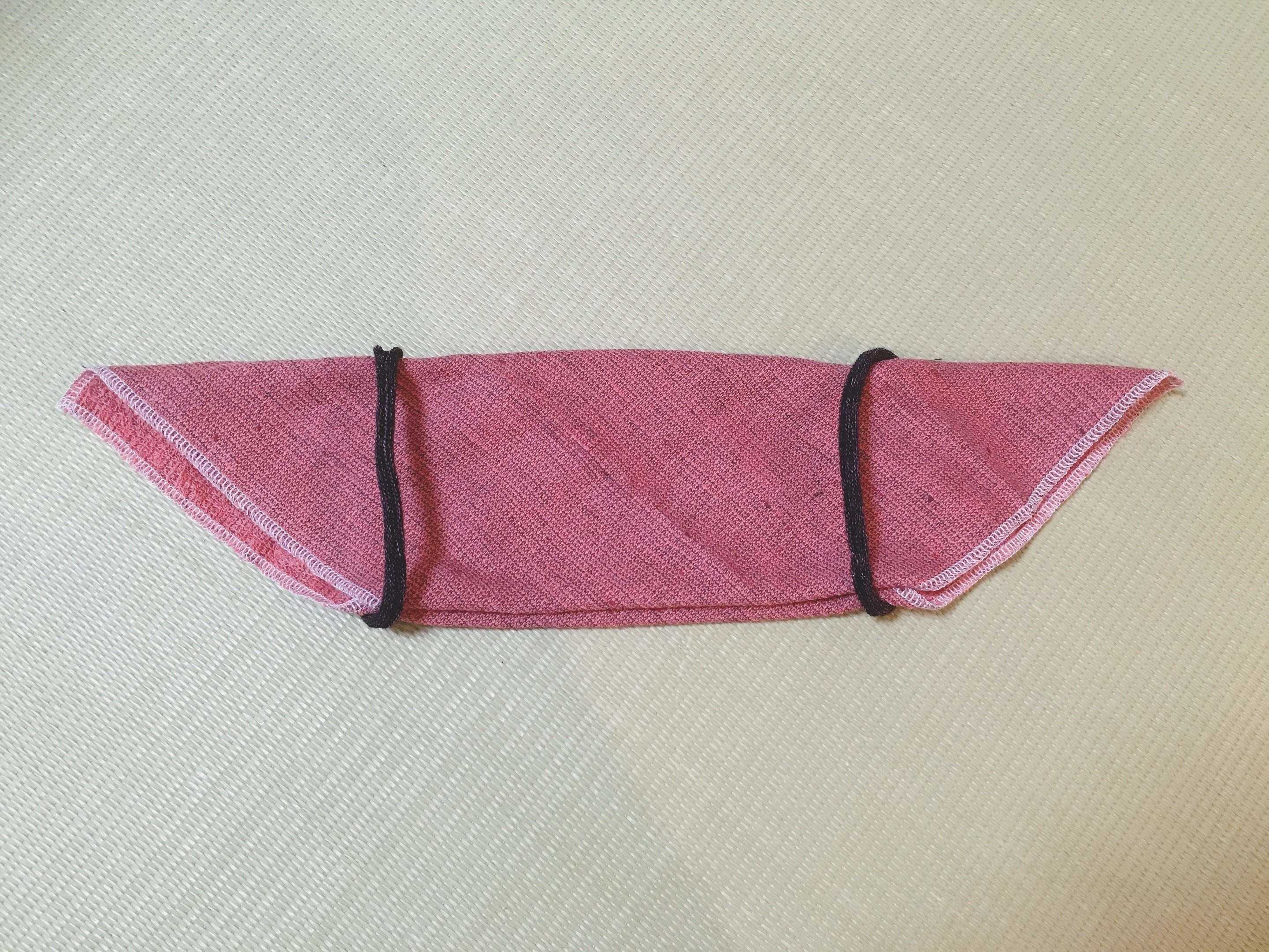 ハンカチでつくる簡易マスクは、だいたい四つ折りまたは三つ折りにするつくり方が一般的ですが、小さめサイズはこのように折れば問題なくつくれます。