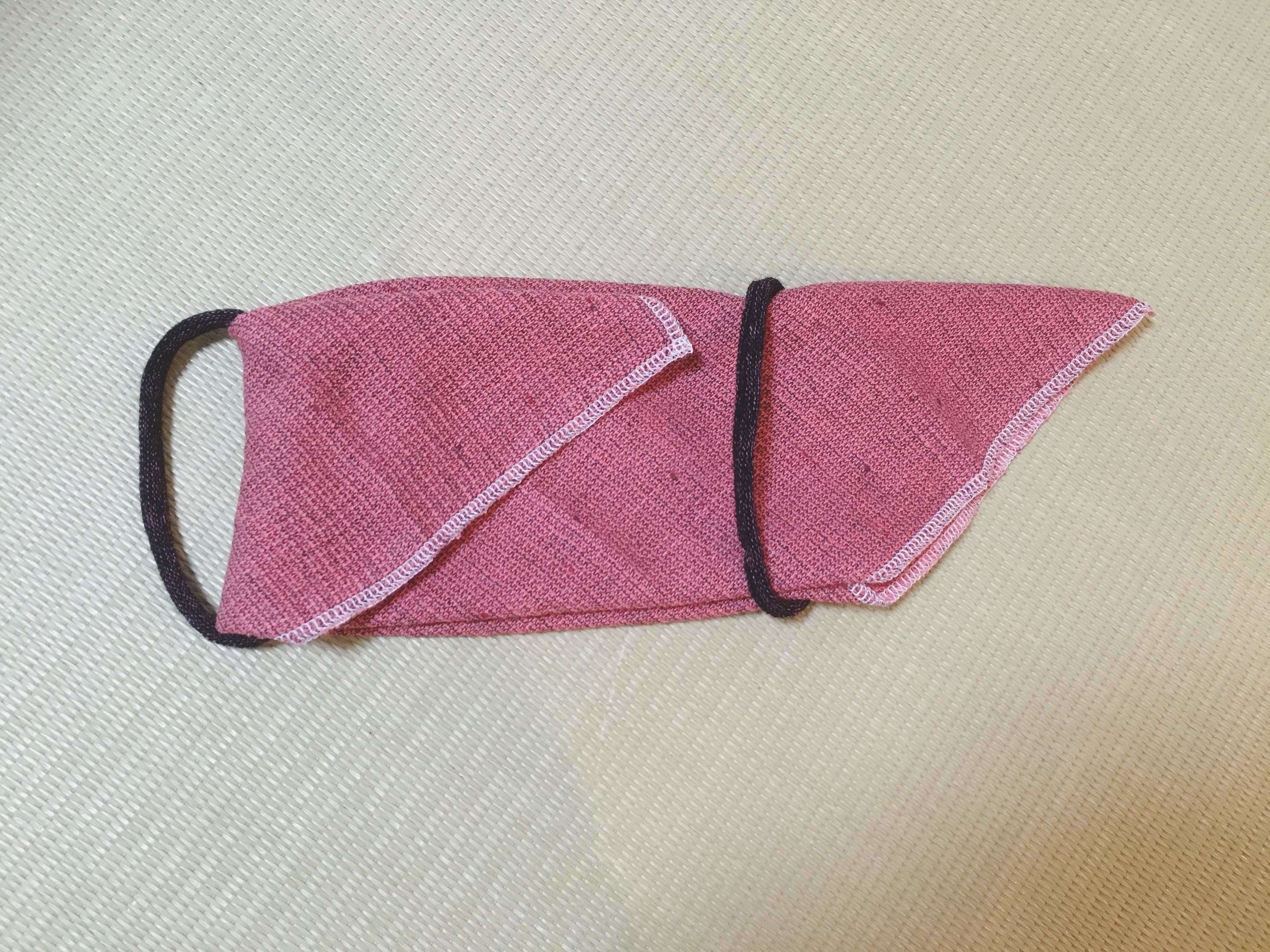 小さめサイズなのできちんとつくれるか心配でしたが装着しても問題なし。これまで自分では50×50cmの布で簡易マスクをつくっていて、大きすぎることが悩みだったので、むしろこちらのサイズのほうがつけていて違和感がありません。