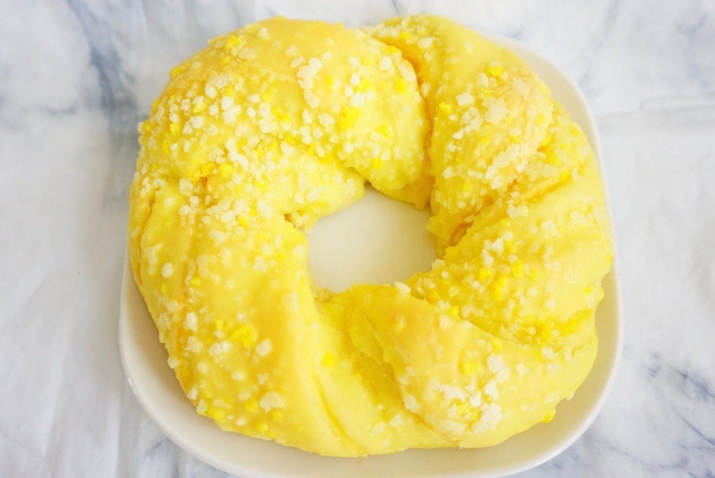バナナクリームを混ぜ込んだもちもち食感の生地の上に、バナナシュガー、ホワイトクランチ、クランブルをトッピングした一品。