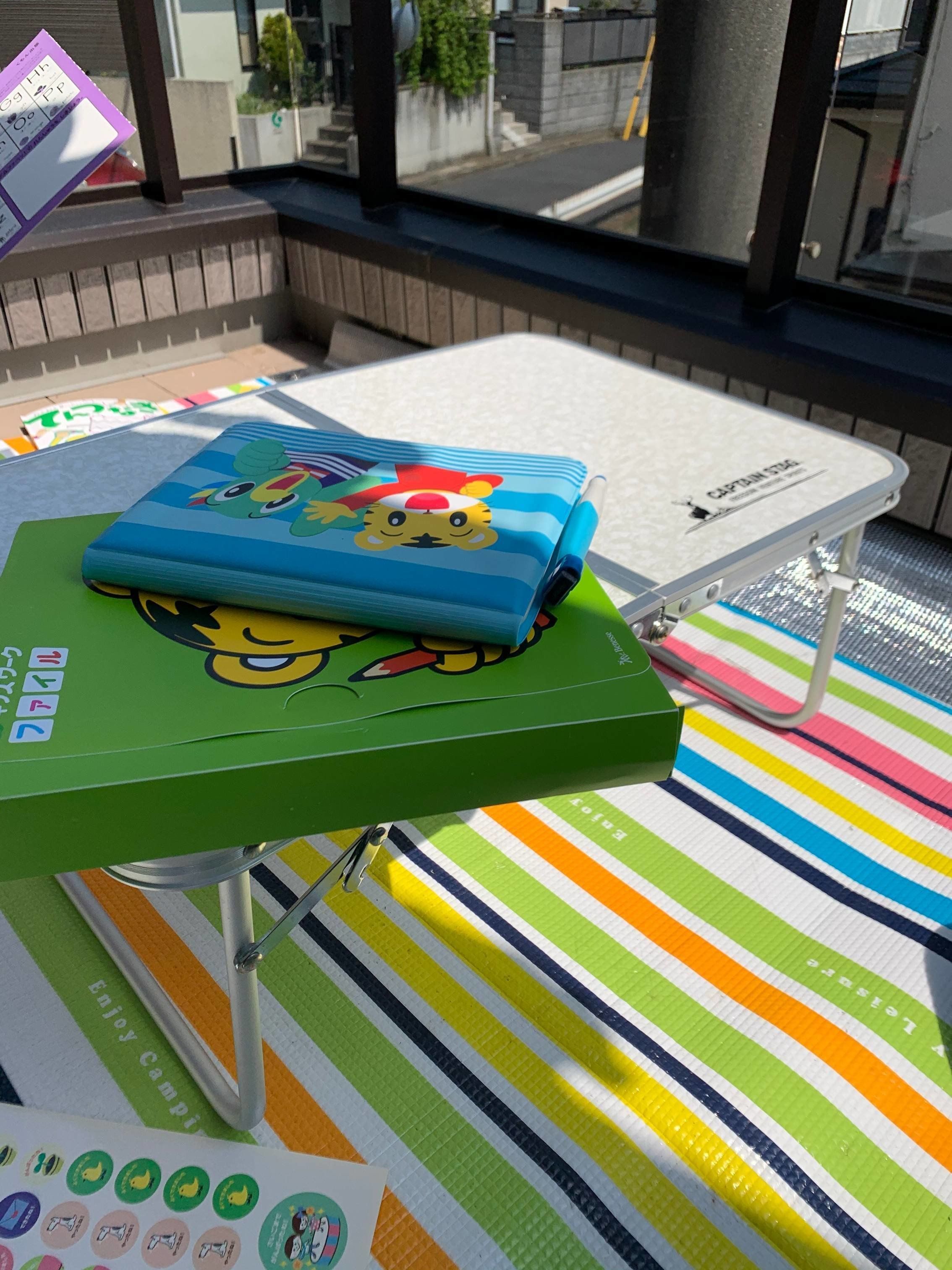 例えば、私の家は2階がリビングの住居なので、バルコニーにレジャーシートとテーブルを置いてドリルを出したところ、ピクニック気分で楽しみながら取り組むことができました。
