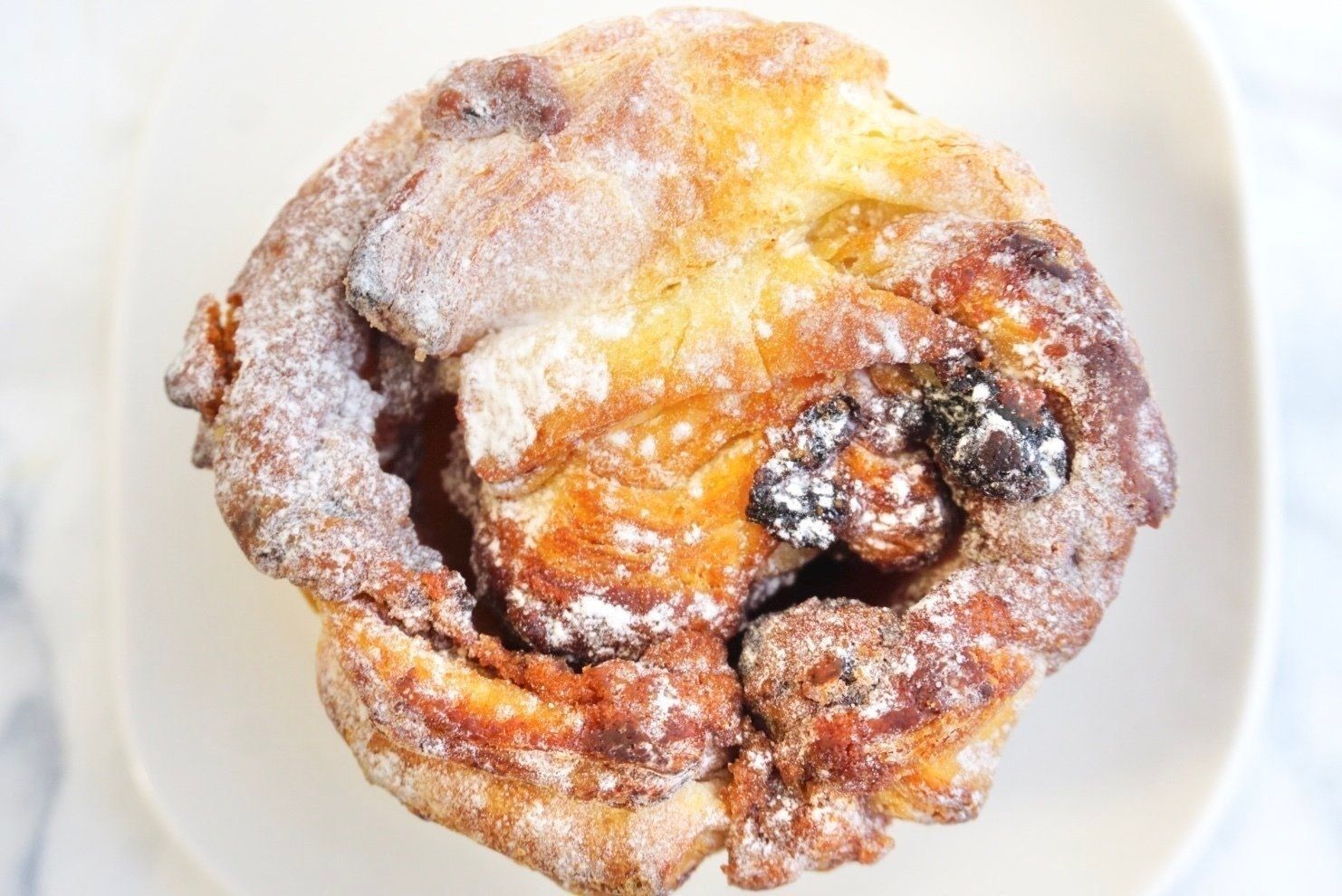 デニッシュ生地をマフィン型に流し焼き上げていて、シナモンフィリング、レーズン、くるみを巻き込んだパンになっています。