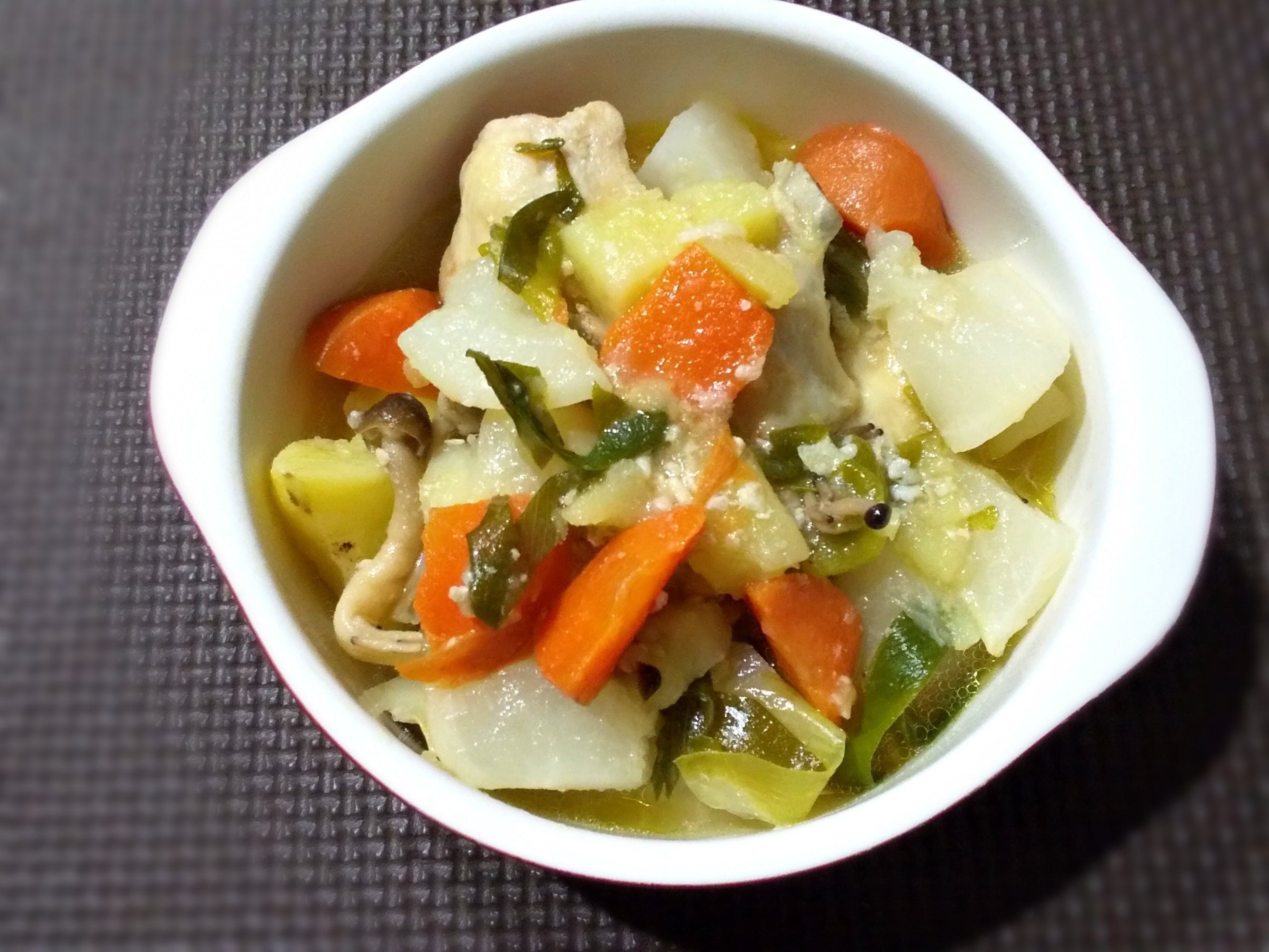 ふだんは塩で仕上げるポトフも、代わりの塩麹でこんな風につくれますよ!麹のつぶつぶが混じるのも、アクセントになります◎